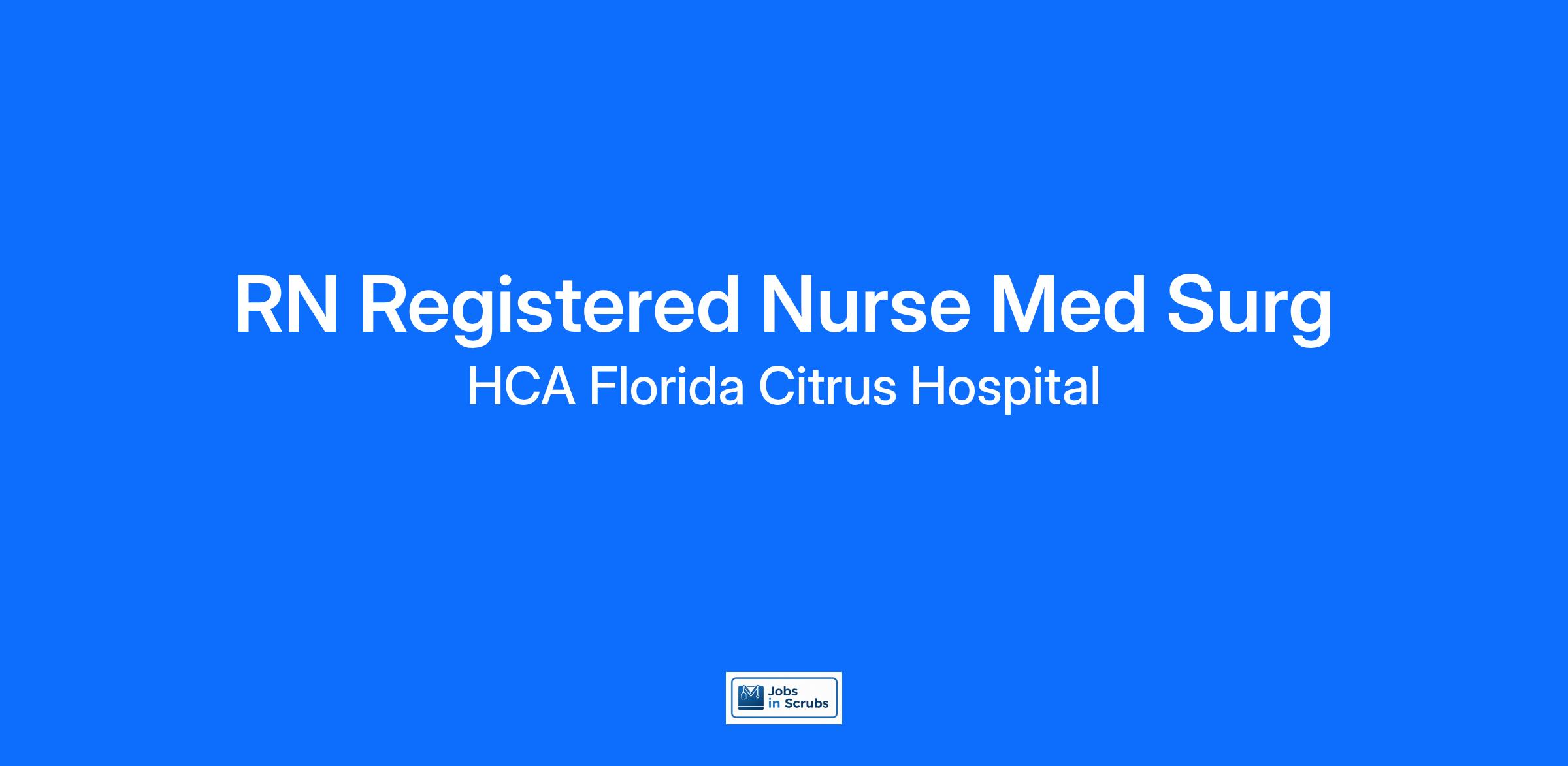 HCA Florida Citrus Hospital is committed to investing in the latest technology enabling nurses to work more efficiently. Are you passionate about delivering patient-centered care? Submit your application for RN Registered Nurse Med Surg position and spend more time at the bedside with the patient.