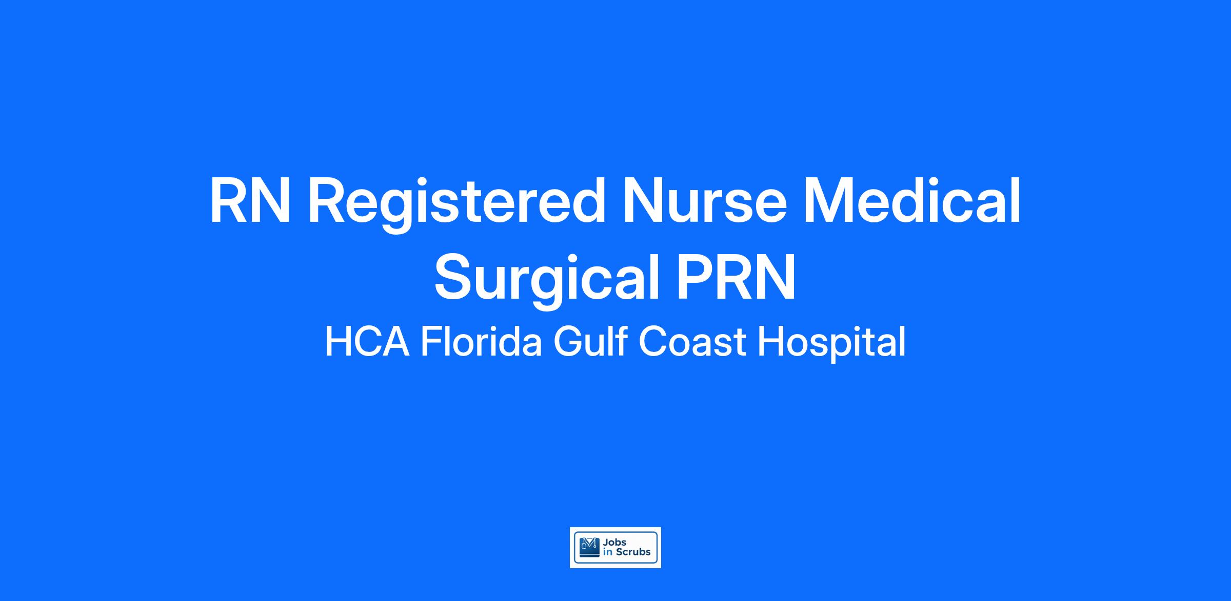 Do you have the PRN career opportunities as a(an) Registered Nurse Medical Surgical PRN you want with your current employer? We have an exciting opportunity for you to join HCA Florida Gulf Coast Hospital which is part of the nation's leading provider of healthcare services, HCA Healthcare.