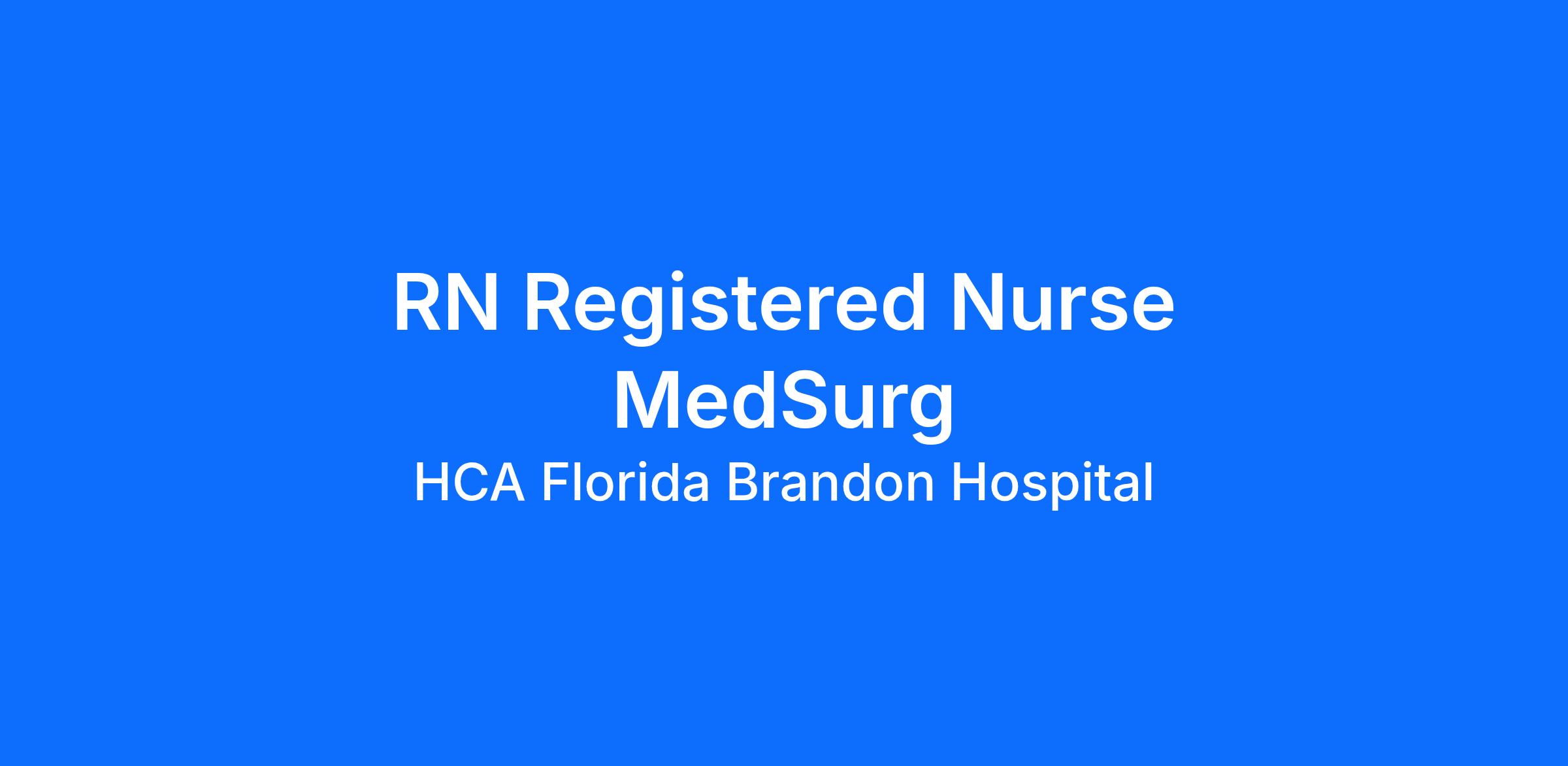 Do you have the career opportunities as a Registered Nurse Medical Surgical you want in your current role? We invest in what matters most to nurses like you – at home, at work, and at every stage in your career. We have an exciting opportunity for you to join HCA Florida Brandon Hospital which is a part of the nation’s leading provider of healthcare services, HCA Healthcare.