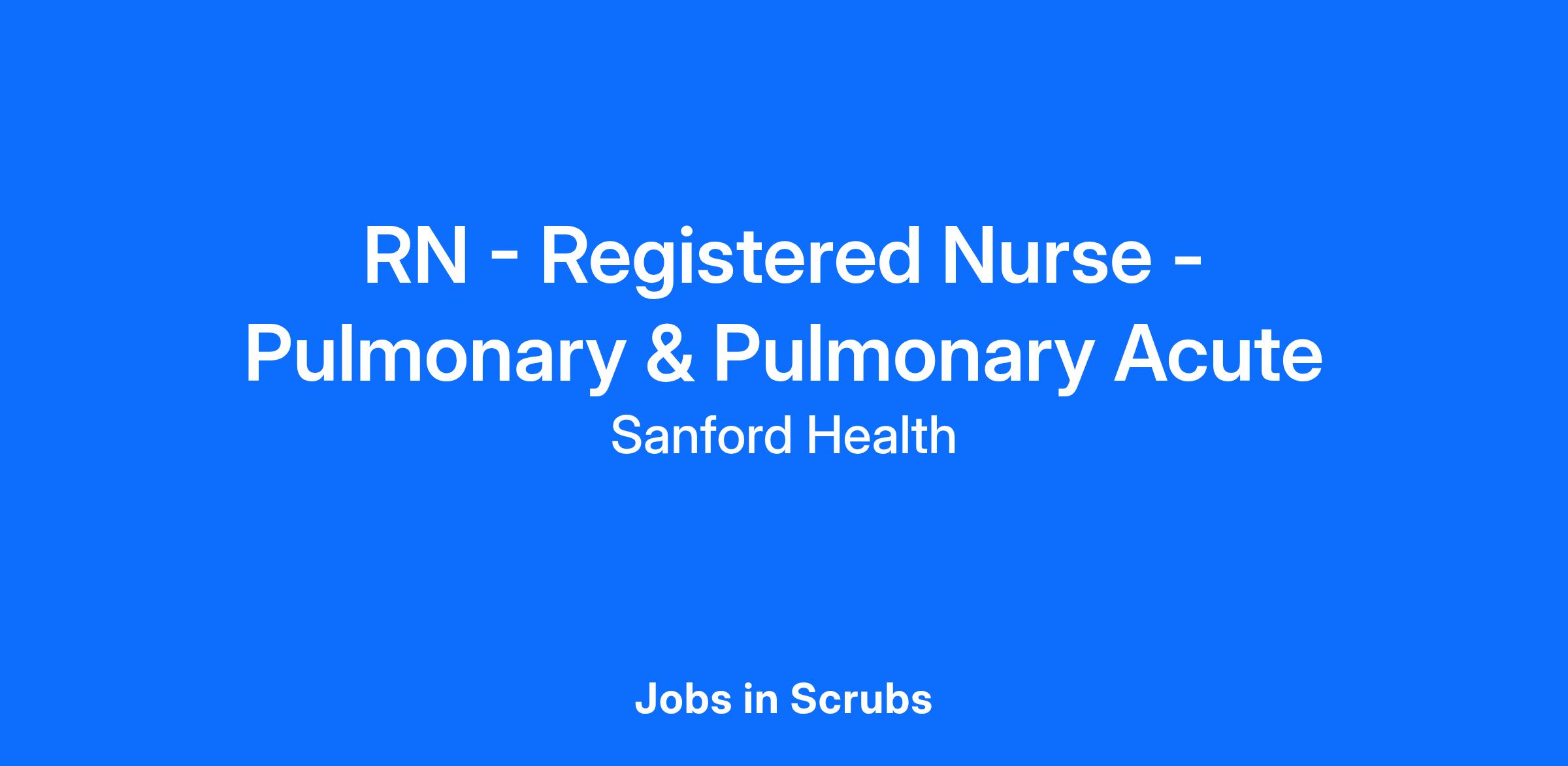 Sanford Health has a Drug Free Workplace Policy. An accepted offer will require a drug screen and pre-employment background screening as a condition of employment.