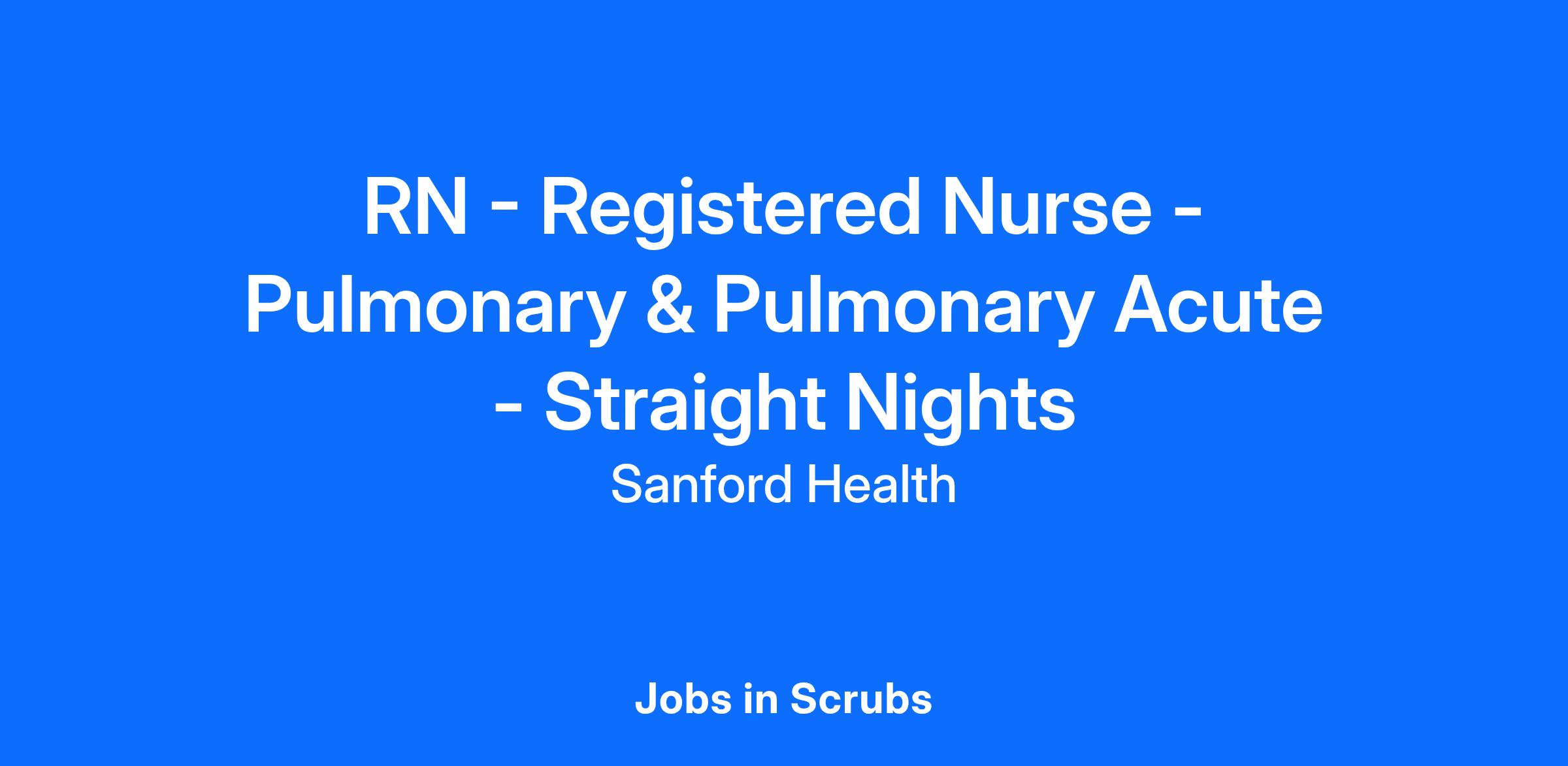 Sanford Health has a Drug Free Workplace Policy. An accepted offer will require a drug screen and pre-employment background screening as a condition of employment.