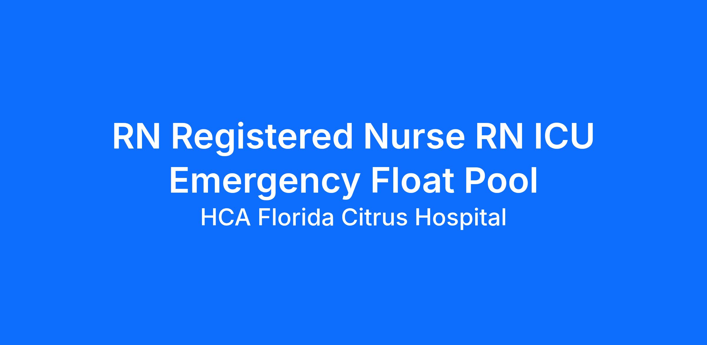 Do you currently have an opportunity to make a real impact with your work? With over 2,000 sites of care and serving over 31.2 million patient interactions every year, nurses at HCA Florida Citrus Hospital have the opportunity to make a real impact. As a(an) RN Registered Nurse RN ICU Emergency Float Pool you can be a part of change.