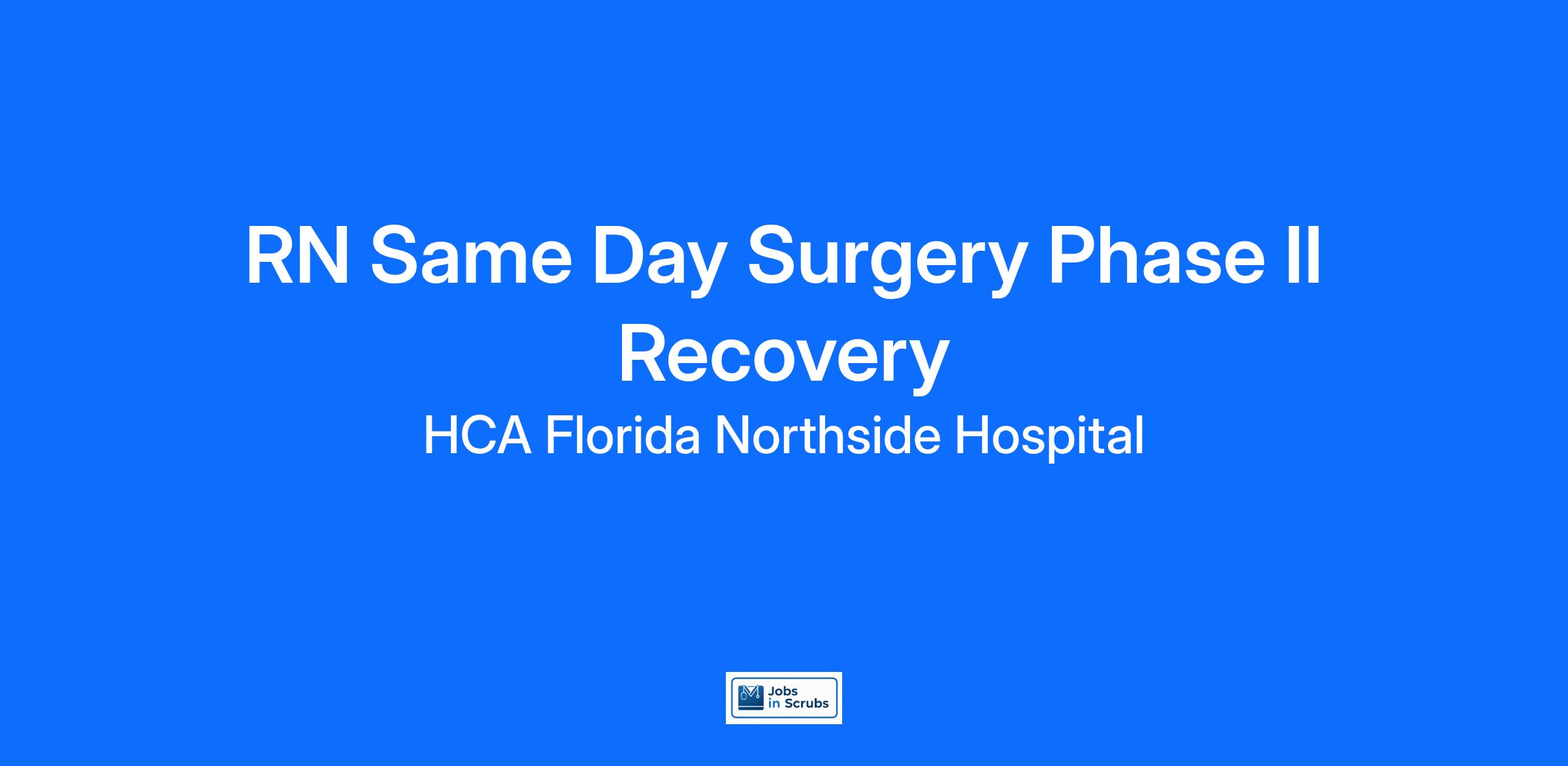Do you want to be appreciated daily? Our nurses are celebrated for being on the front line, empathetic for patients. At HCA Florida Northside Hospital our nurses set us apart from any other healthcare provider. We are seeking a(an) RN Same Day Surgery Phase II Recovery to join our healthcare family.
