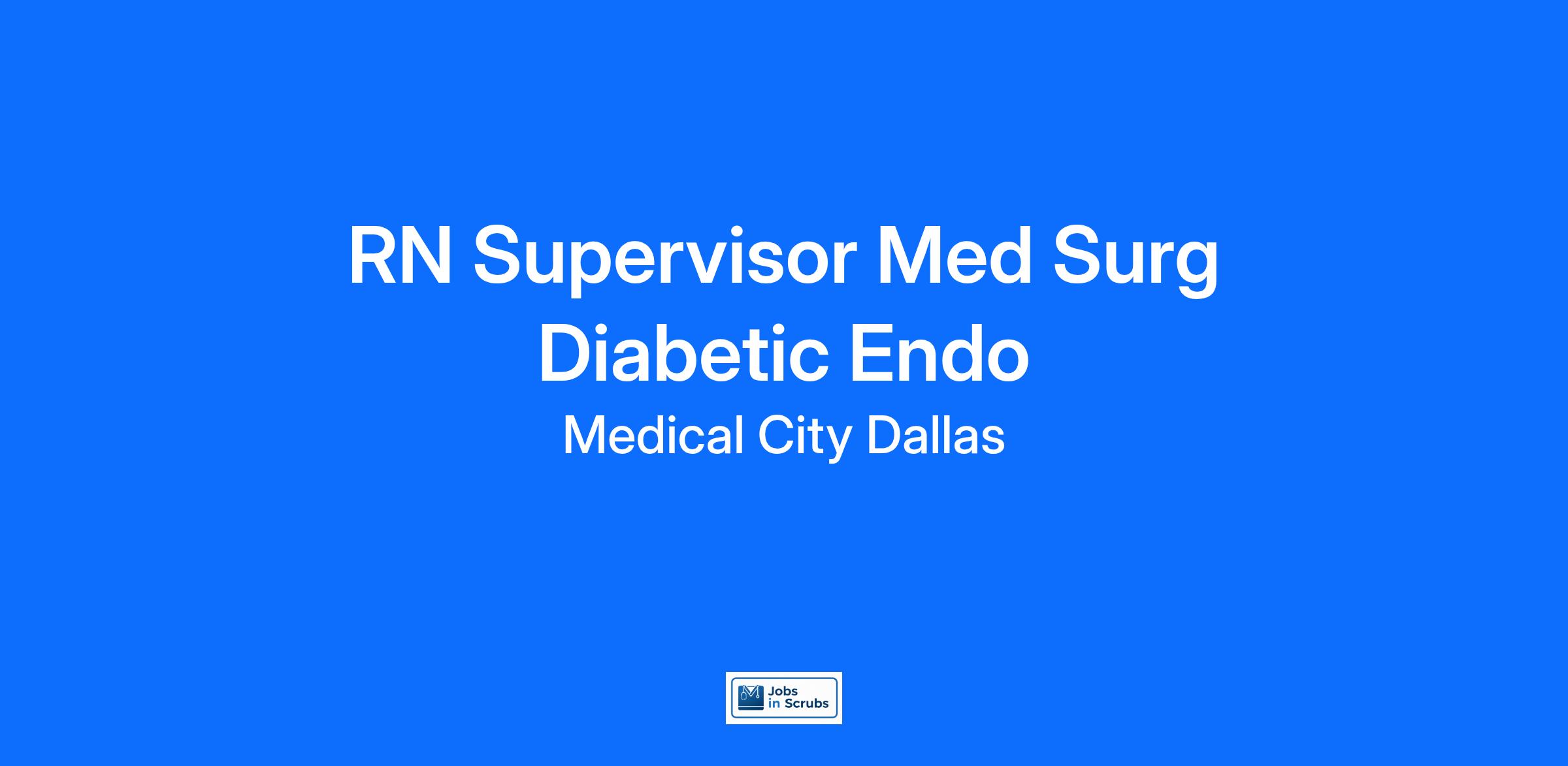 Are you looking for a place to deliver excellent care patients deserve? At Medical City Dallas we support our colleagues in their positions. Join our Team as a(an) RN Supervisor Med Surg Diabetic Endo and access programs to assist with every stage of your career.
