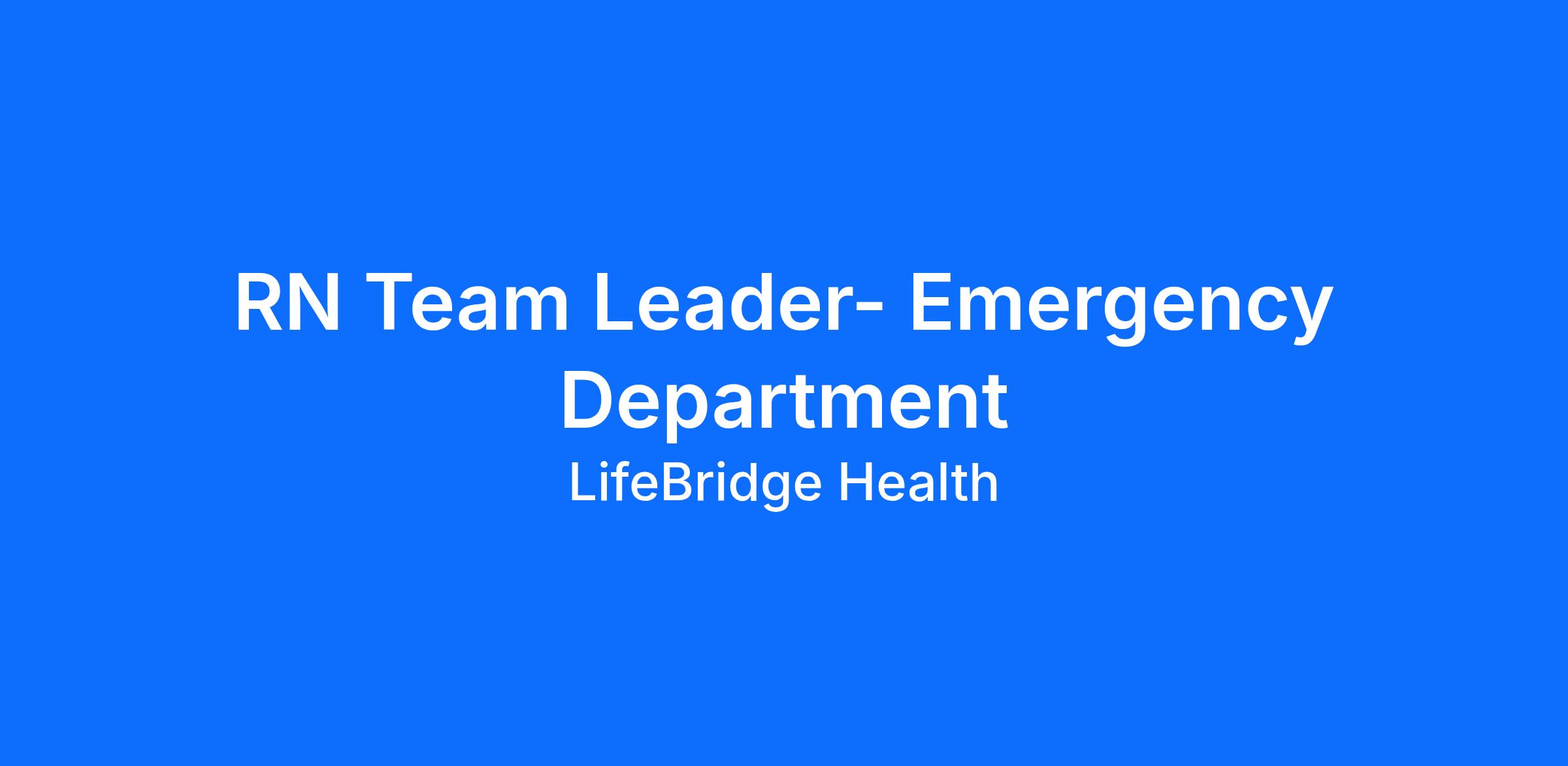 Job Title: Team Lead – Emergency Department