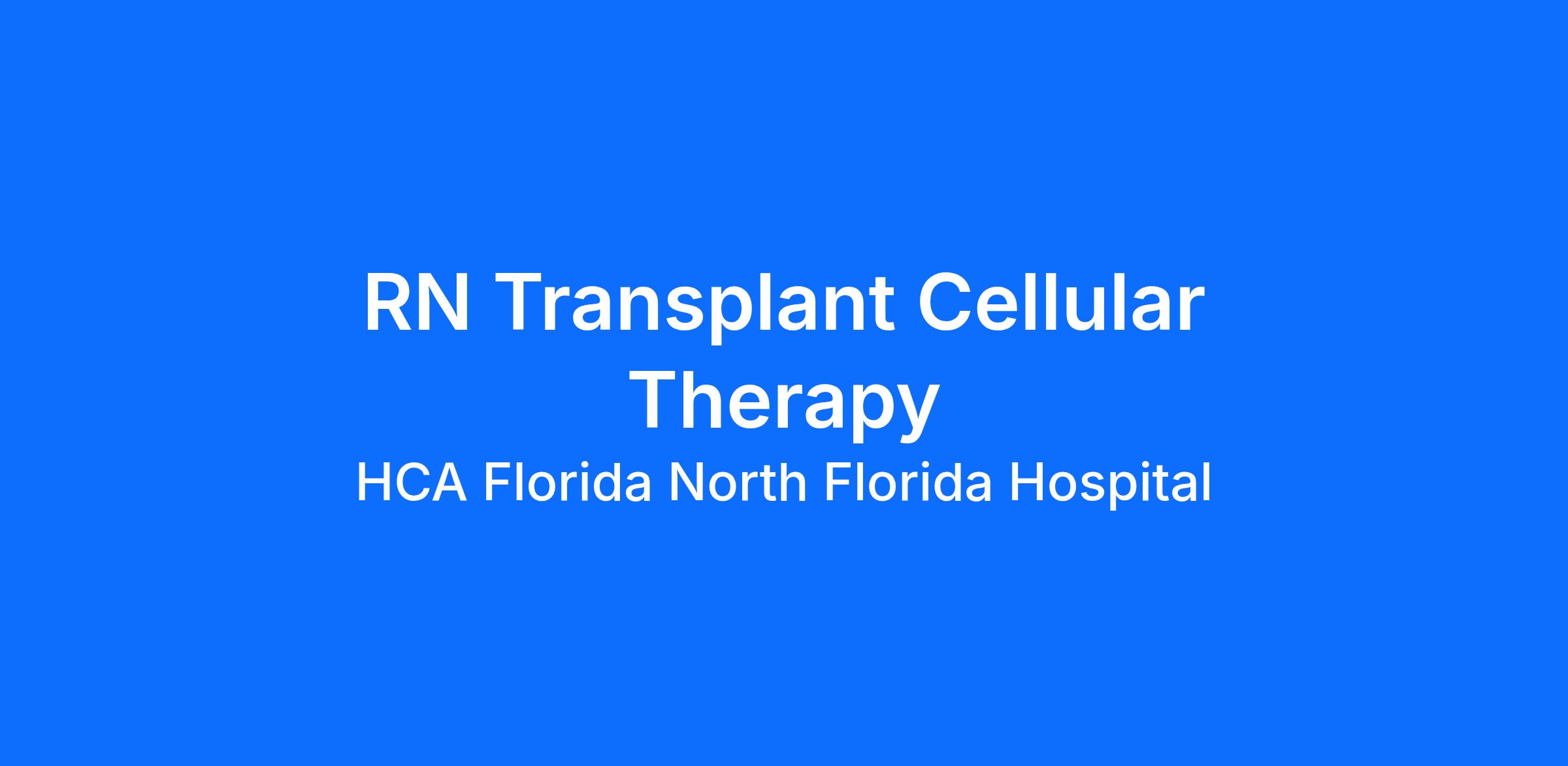 Are you looking for a place to deliver excellent care patients deserve? At HCA Florida North Florida Hospital we support our colleagues in their positions. Join our Team as a(an) RN Transplant Cellular Therapy and access programs to assist with every stage of your career.