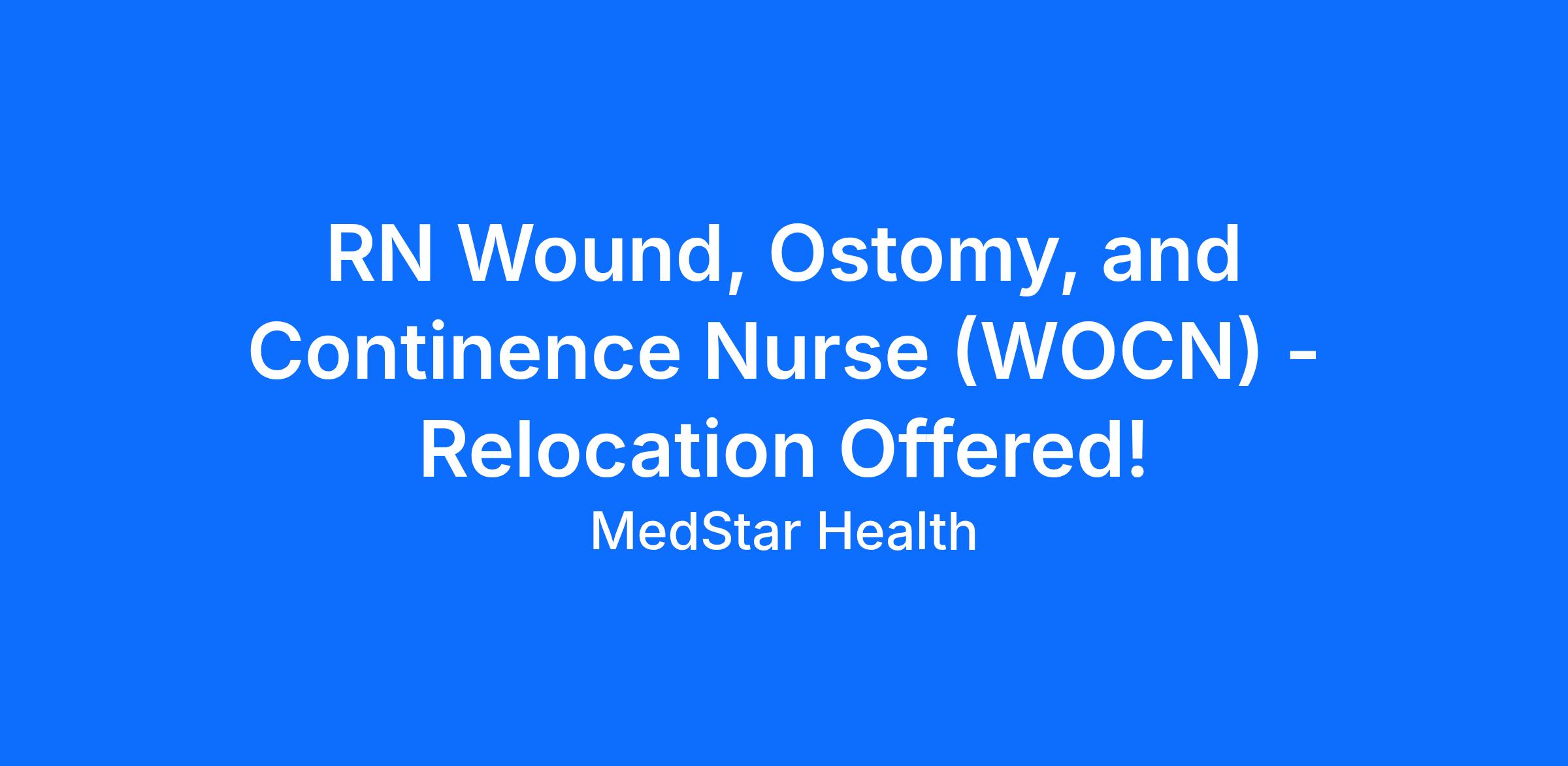 - WOCN (Wound, Ostomy, and Continence Nursing) required or ET (Enterostomal Therapist) certification required