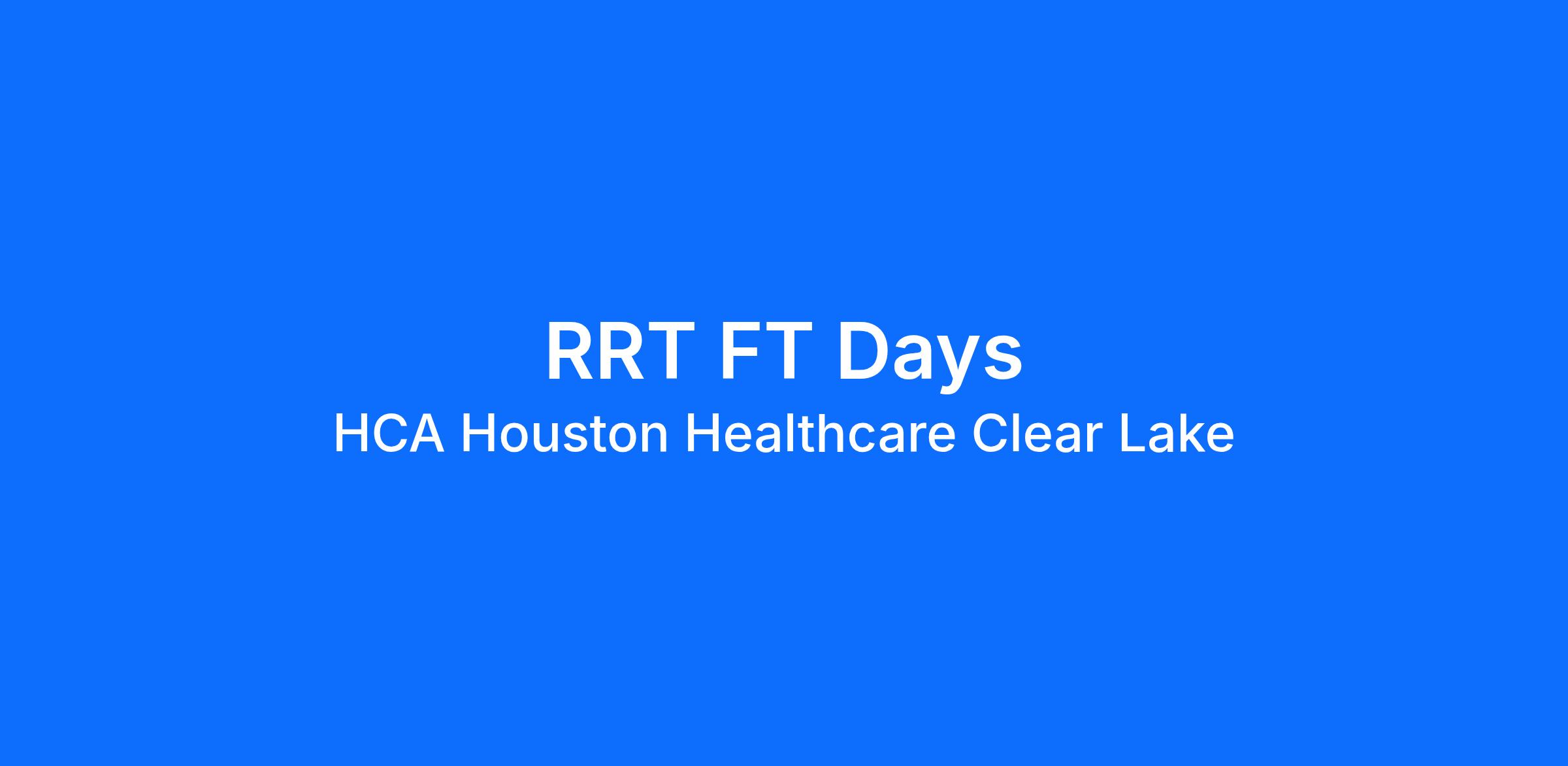 Experience the HCA Healthcare difference where colleagues are trusted, valued members of our healthcare team. Grow your career with an organization committed to delivering respectful, compassionate care, and where the unique and intrinsic worth of each individual is recognized. Submit your application for the opportunity below:RRT FT DaysHCA Houston Healthcare Clear Lake