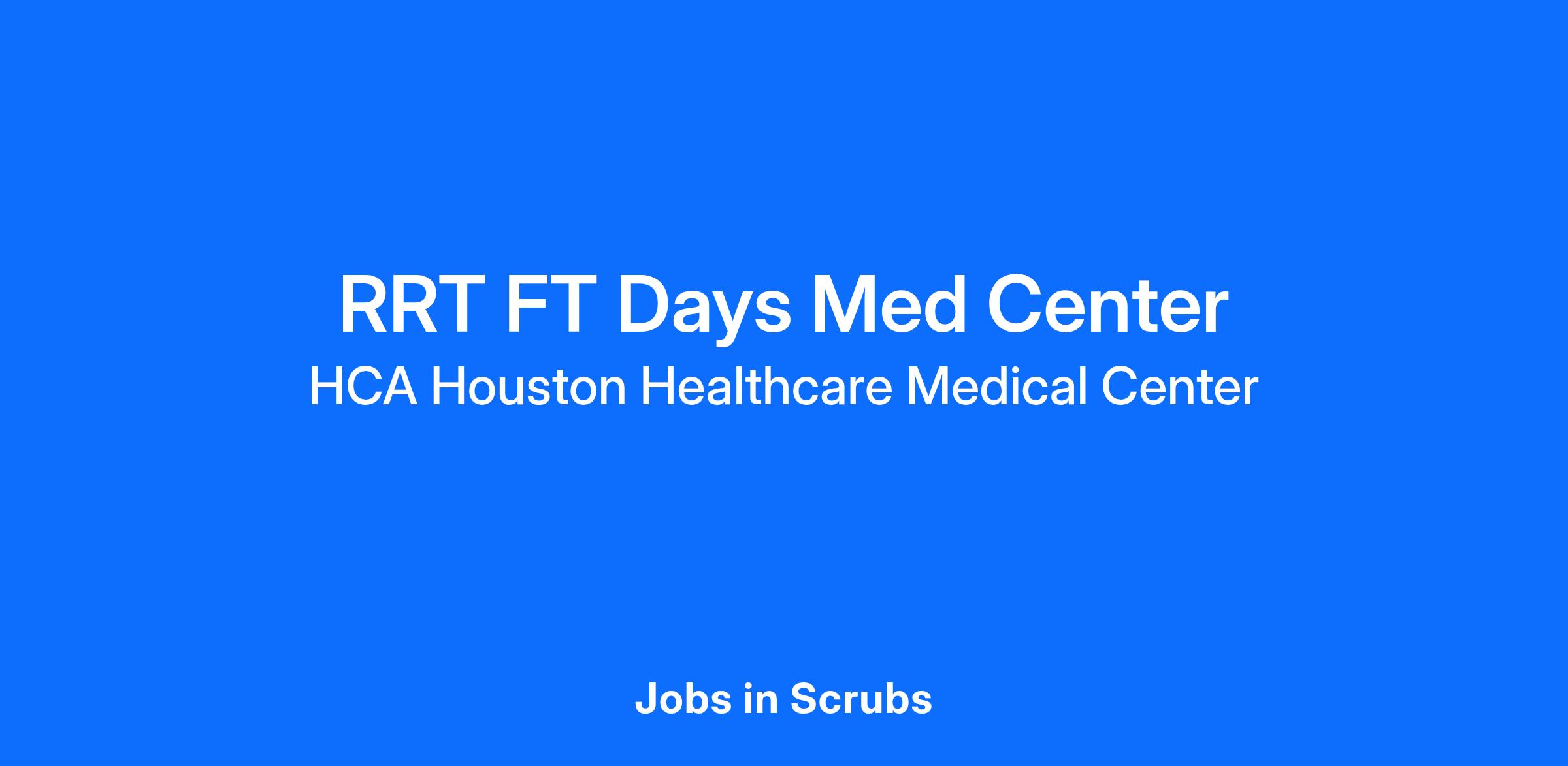 Do you want to join an organization that invests in you as a(an) RRT FT Days Med Center? At HCA Houston Healthcare Medical Center, you come first. HCA Healthcare has committed up to $300 million in programs to support our incredible team members over the course of three years.