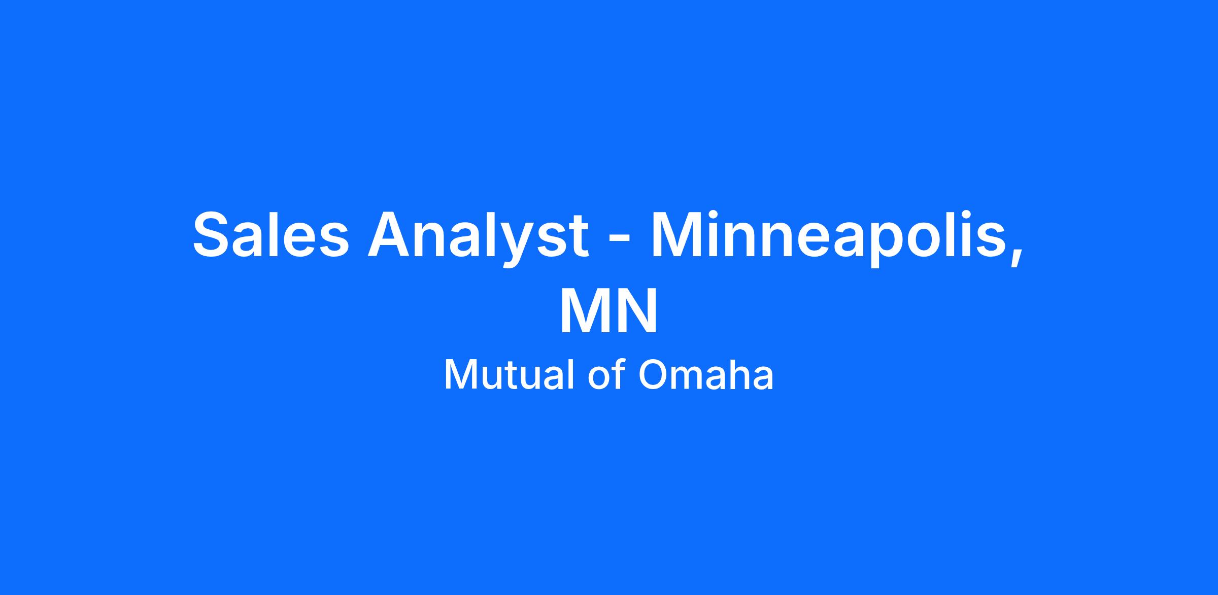 | At Mutual of Omaha, we specialize in delivering exceptional client service and innovative solutions tailored to meet our clients' needs. We are seeking a motivated and dedicated individual to join our Sales team as a Sales Assistant/Analyst in Minneapolis, MN area office. Our position offers an excellent opportunity to deepen your understanding of our products/services and contribute to the growth of our client base. |