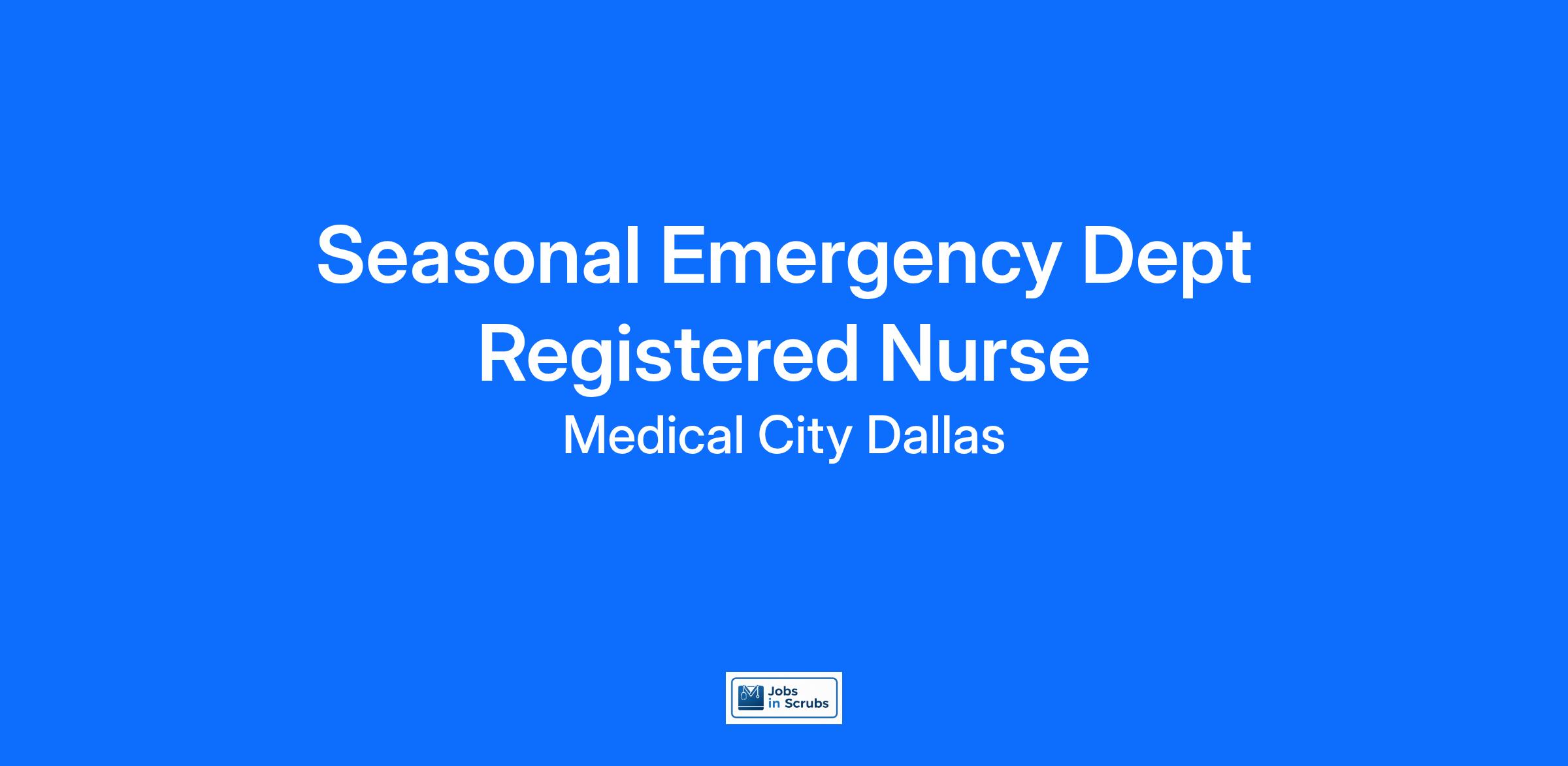 Do you have the career opportunities as a Seasonal Emergency Dept Registered Nurse you want with your current employer? We have an exciting opportunity for you to join Medical City Dallas which is part of the nation's leading provider of healthcare services, HCA Healthcare.