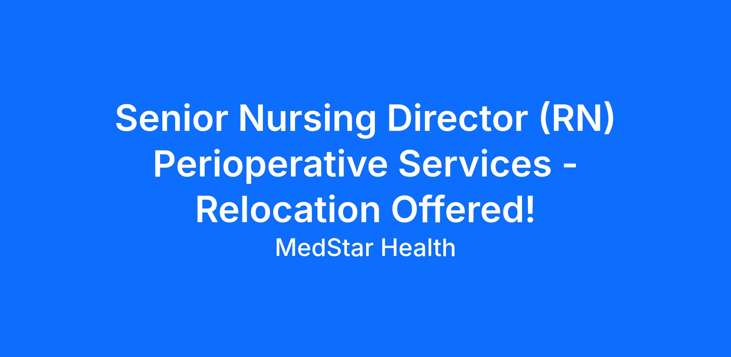 The Senior Nursing Director of Perioperative Services is a key member of the Division of Nursing leadership team and assumes 24/7 administrative responsibility for the operational, clinical, financial, and personnel management of perioperative nursing services. This leader drives strategic initiatives, advances professional nursing practice, and fosters a culture of shared governance, accountability, and continuous improvement in alignment with MedStar Health’s Patient First philosophy and SPIRIT Values.