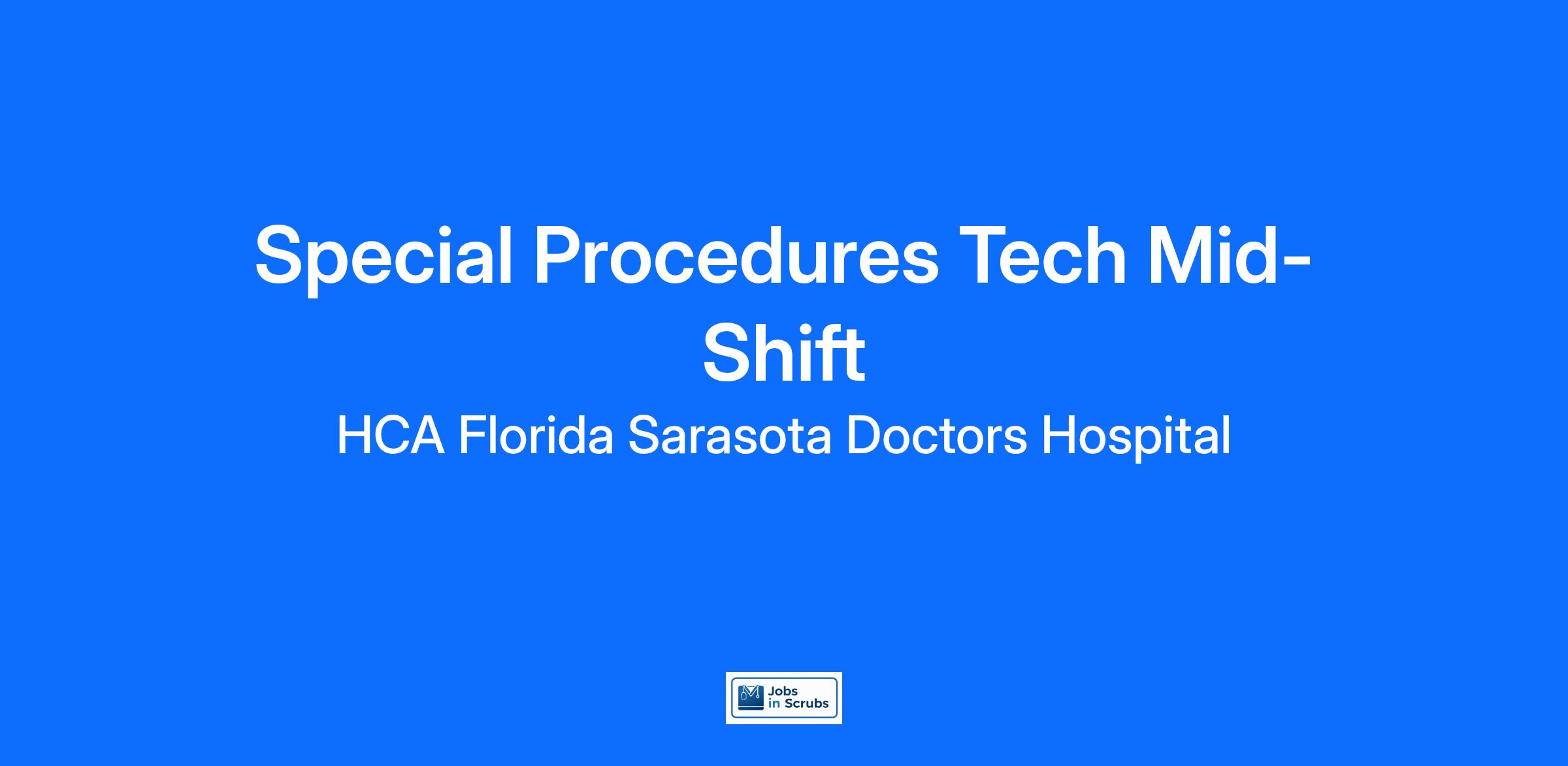 Come join our team as a(an) Special Procedures Tech Mid-Shift. We care for our community! Just last year, HCA Healthcare and our colleagues donated $13.8 million dollars to charitable organizations. Apply Today!