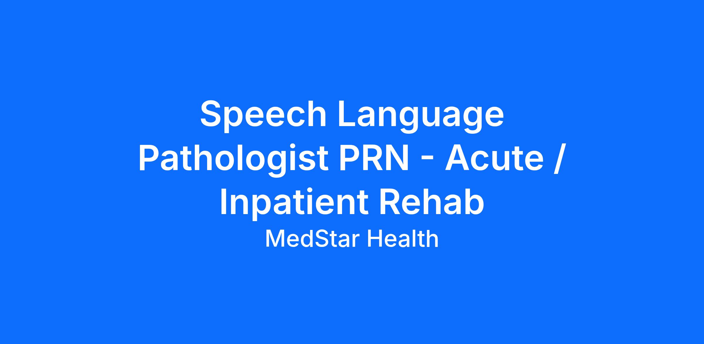 Speech Language Pathologist PRN - Acute / Inpatient Rehab