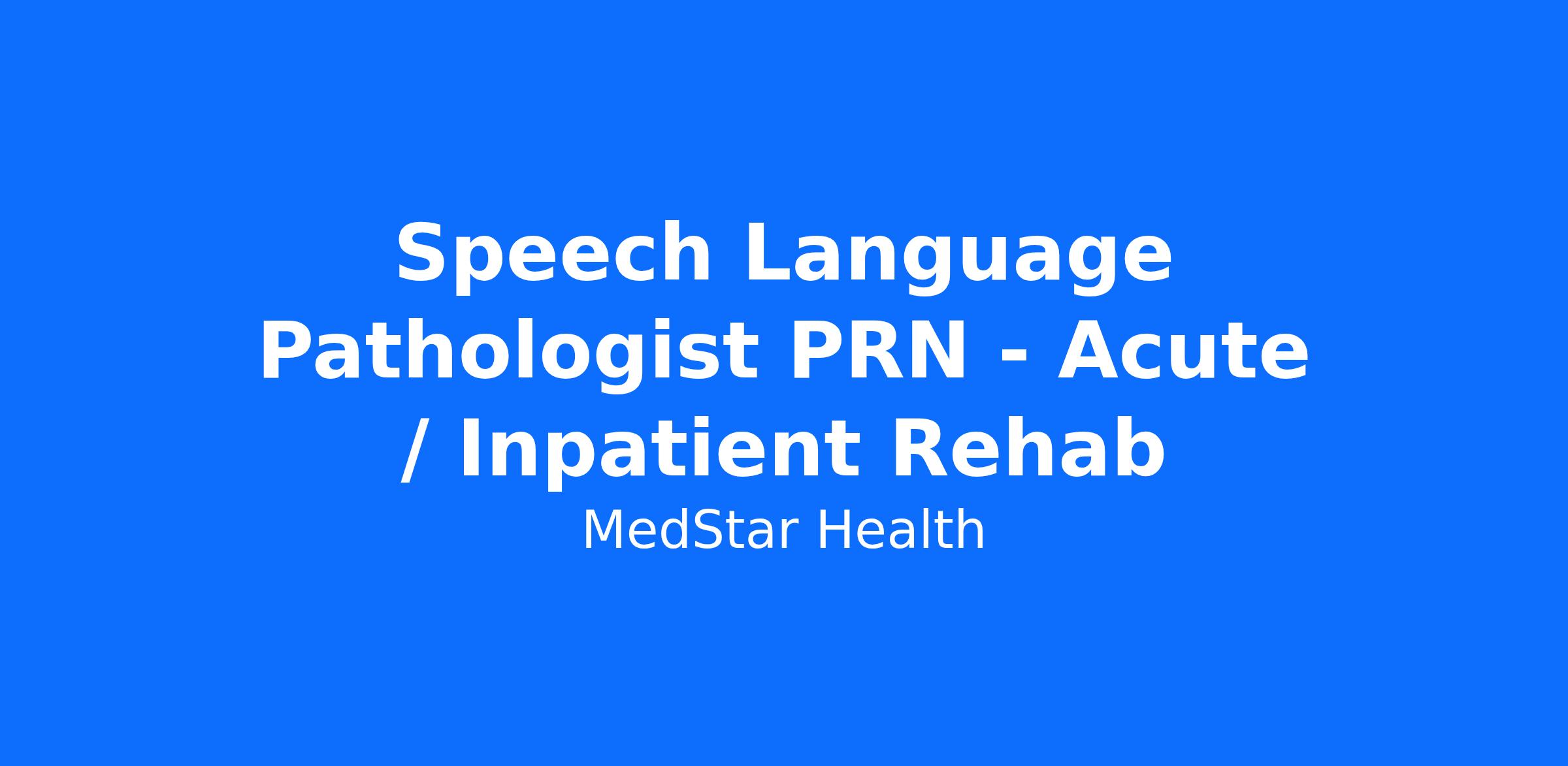 Speech Language Pathologist PRN - Acute / Inpatient Rehab
