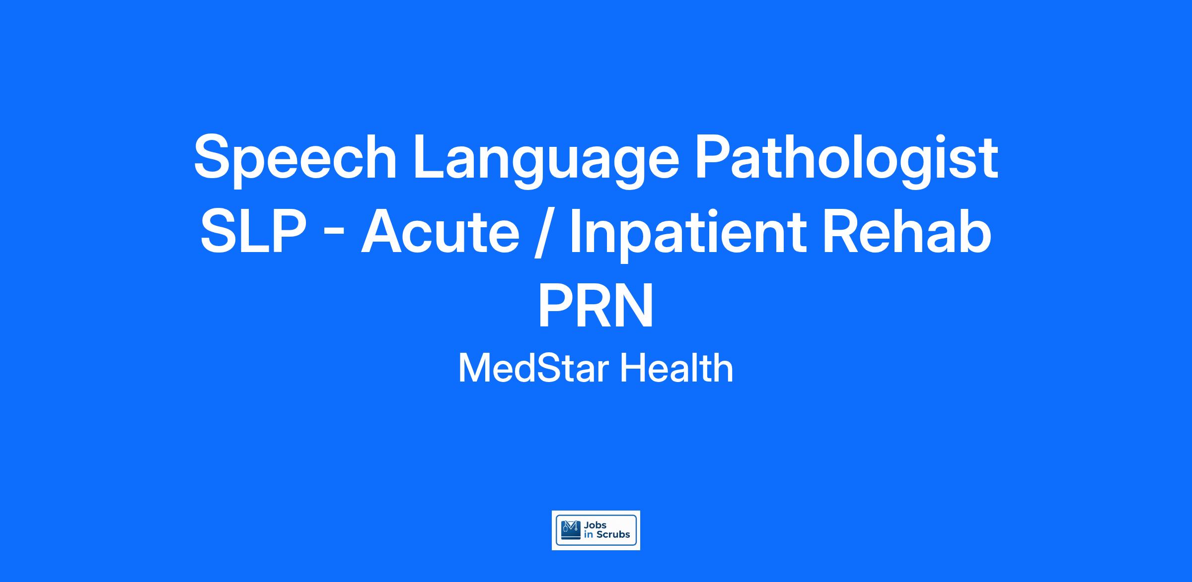 MedStar Health is looking for a Speech Language Pathologist to join our team at MedStar Union Memorial Hospital!