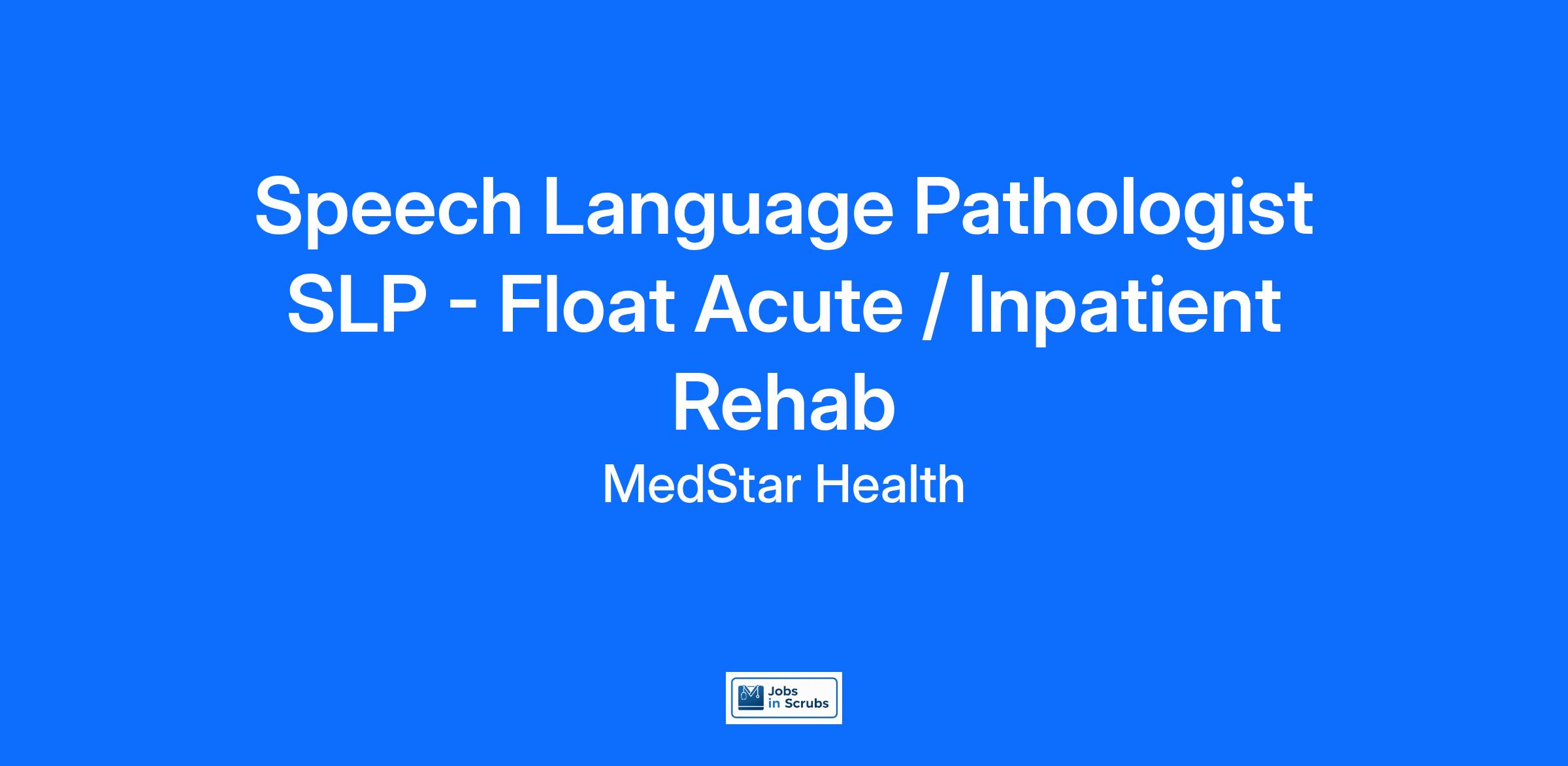 Speech Language Pathologist SLP - Float Acute / Inpatient Rehab