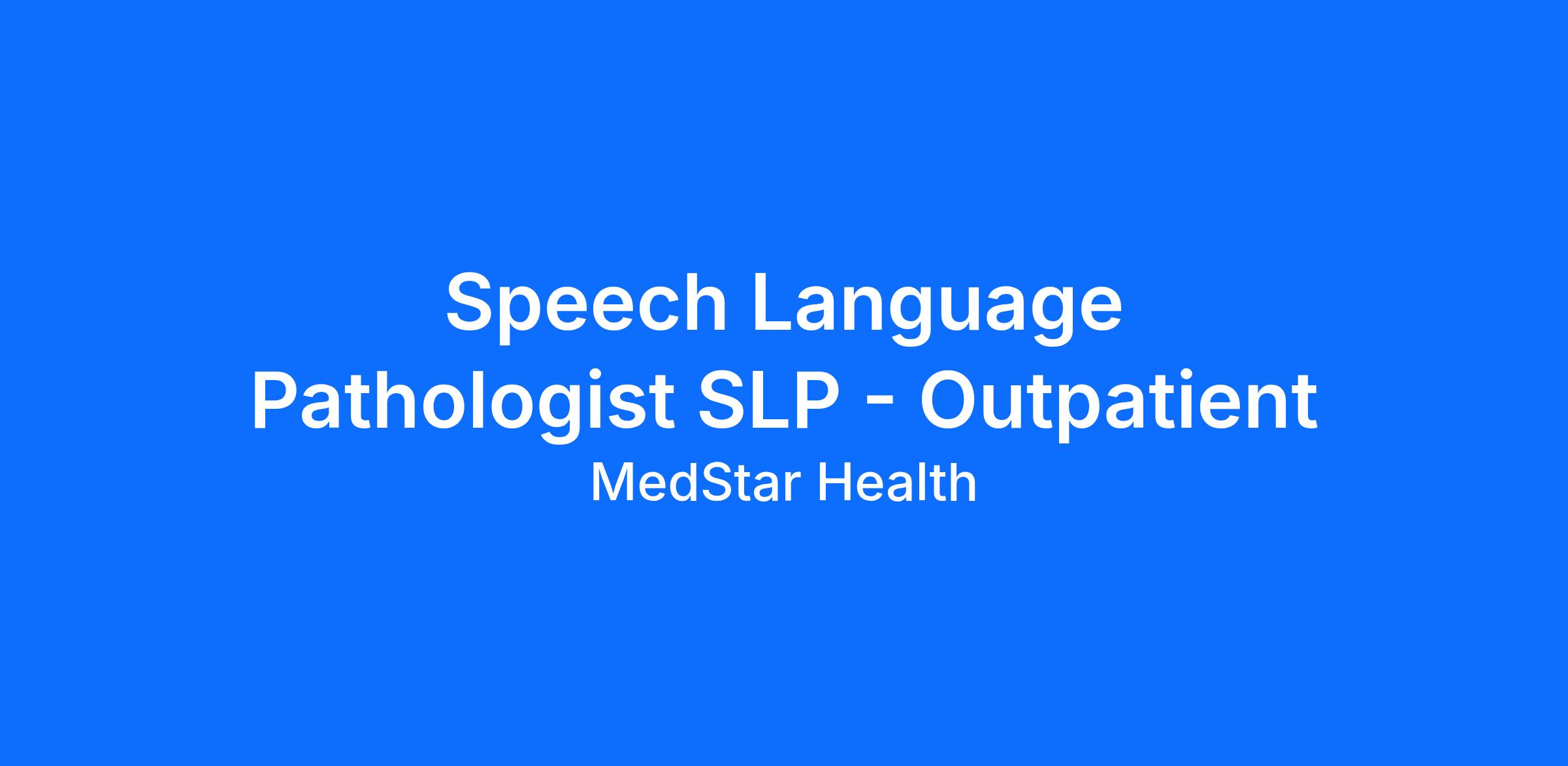 Speech Language Pathologist SLP - Outpatient