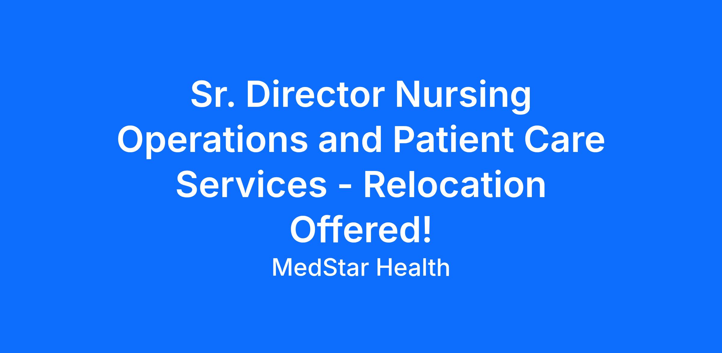 General Summary of PositionThe Senior Director of Nursing Operations and Patient Care Services is an active member of MedStar Health entity-based Division of Nursing's (DON) leadership/management team and is responsible for multiple defined areas of organized nursing services (clinical or administrative general or specialized). Maintains and demonstrates current knowledge of healthcare organizations and clinical practice providing leadership and expertise to professional nursing practice and the provision of quality healthcare delivery. Creates and facilitates a learning environment and atmosphere of participative management within the framework of collaborative governance and shared decision-making. Contributes to the DON strategic plan and annual goals and is accountable for the implementation and attainment of these goals within the defined areas of responsibility. Promotes a culture in practice to assure the MedStar Health/hospital/entity mission of a Patient First environment and SPIRIT Values enhances productivity role engagement and job satisfaction.The Senior Director of Nursing Operations and Patient Care Services is a Department Leader who assumes 24-hour administrative and leadership authority and responsibility for the management and direction of the operational personnel and financial activities of the specified division units or procedural areas. These functions are coordinated with the Executive Staff Hospital Leadership Medical Staff and others and are performed in accordance with all applicable laws and regulations and MedStar Health and entity's mission vision and values.