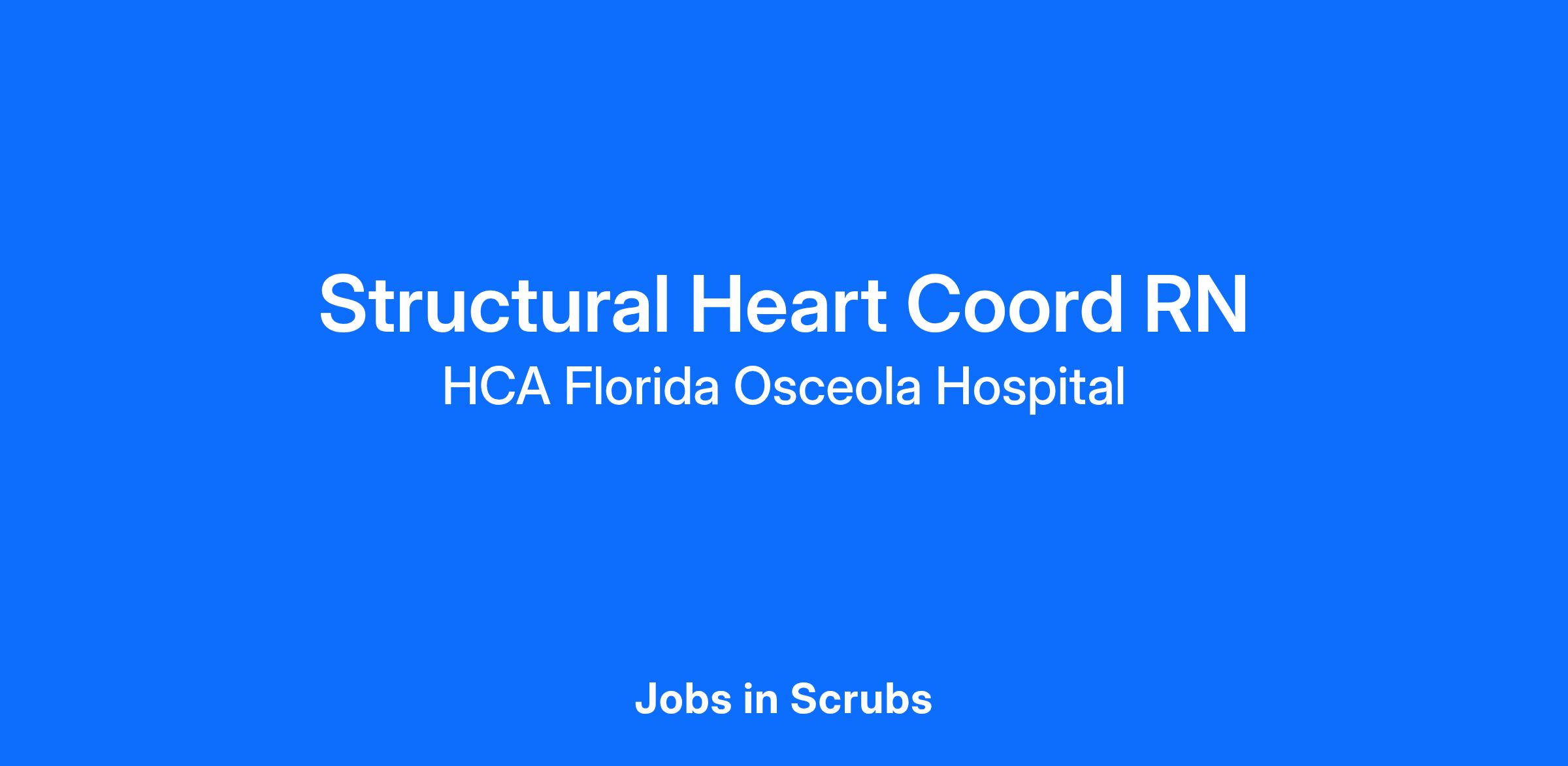 Are you passionate about the patient experience? At HCA Healthcare, we are committed to caring for patients with purpose and integrity. We care like family! Jump-start your career as a(an) Structural Heart Coord RN today with HCA Florida Osceola Hospital.