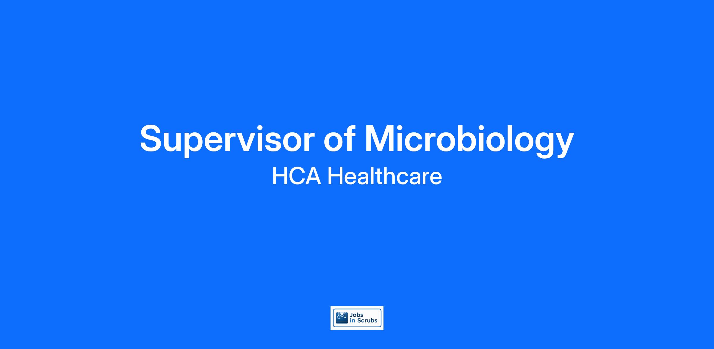 Our teams are dedicated to improving human life. Each year about five percent of all U.S. hospital services happen at an HCA Healthcare facility. Be an impact as a Supervisor of Microbiology where your passion for leading and creativity are valued? We want your knowledge and expertise!