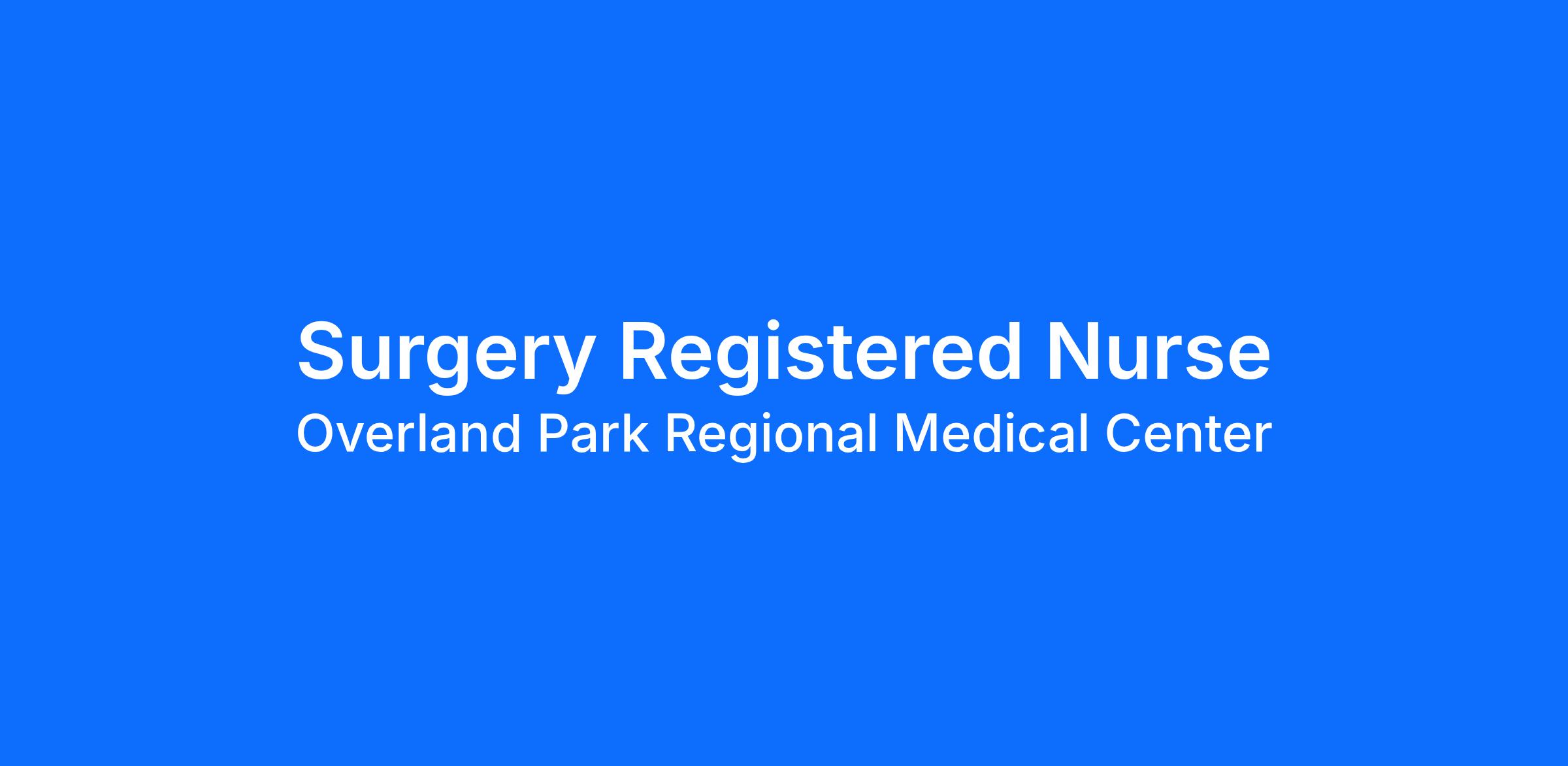 Do you want to join an organization that invests in you as a(an) Surgery Registered Nurse? At Overland Park Regional Medical Center, you come first. HCA Healthcare has committed up to $300 million in programs to support our incredible team members over the course of three years.