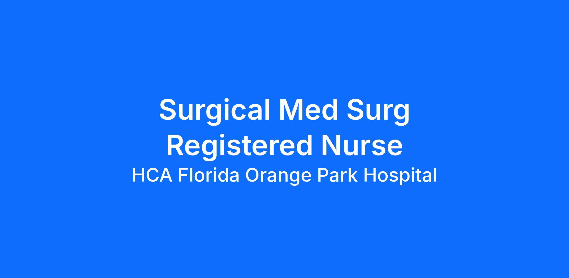 Do you currently have an opportunity to make a real impact with your work? With over 2,000 sites of care and serving over 31.2 million patient interactions every year, nurses at HCA Florida Orange Park Hospital have the opportunity to make a real impact. As Surgical Med Surg RN you can be a part of change.