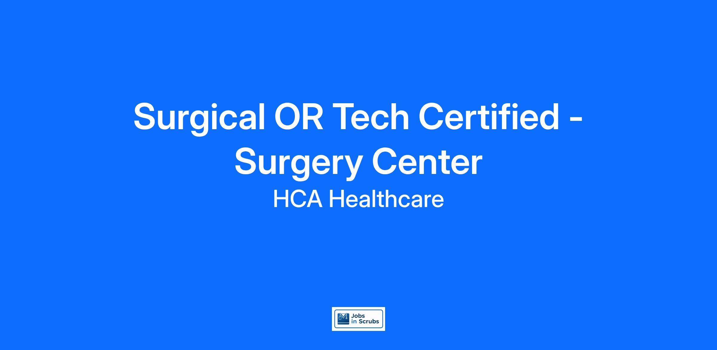 Experience the HCA Healthcare difference where colleagues are trusted, valued members of our healthcare team. Grow your career with an organization committed to delivering respectful, compassionate care, and where the unique and intrinsic worth of each individual is recognized. Submit your application for the opportunity below: Surgical OR Tech Certified - Surgery Center North Cypress Surgery Center