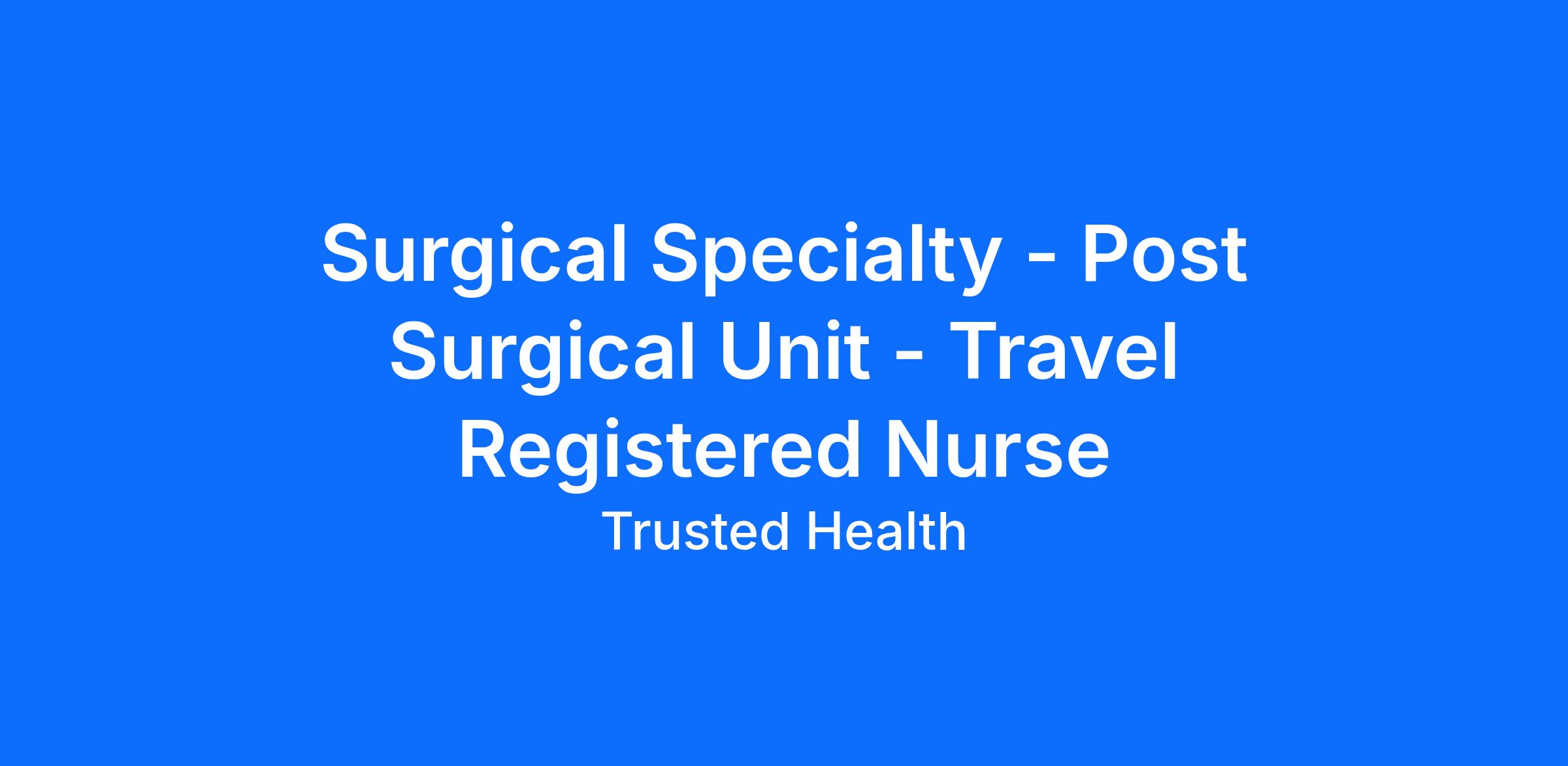 Surgical Specialty - Post Surgical Unit - Travel Registered Nurse