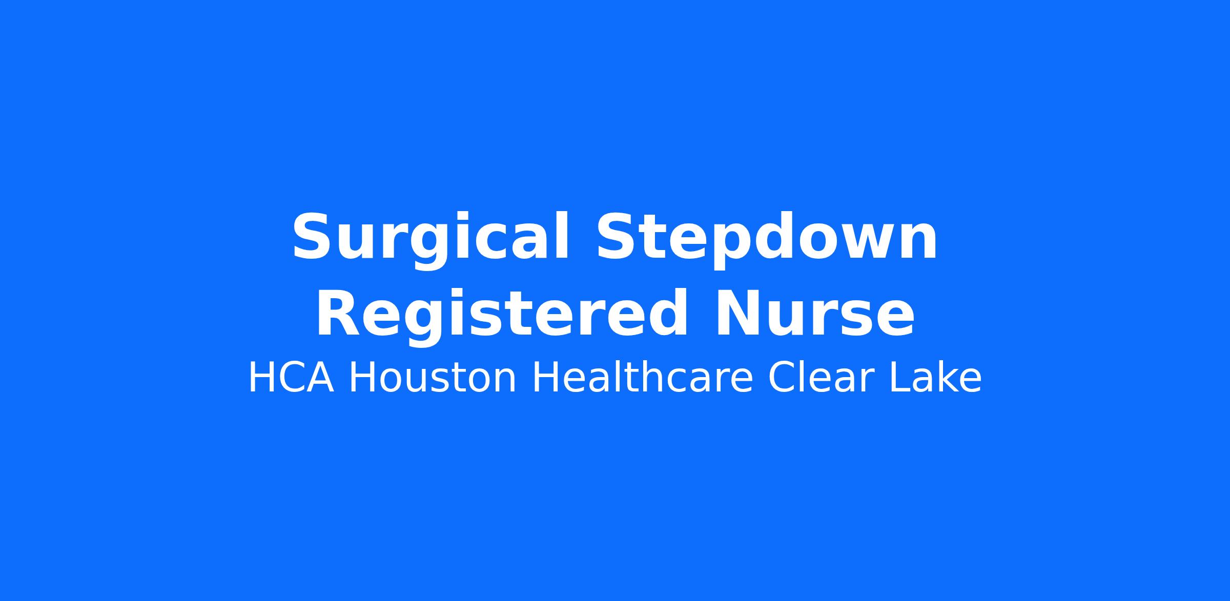 Are you looking for a place to deliver excellent care patients deserve? At HCA Houston Healthcare Clear Lake we support our colleagues in their positions. Join our Team as a Registered Nurse Surgical Step-down and access programs to assist with every stage of your career.