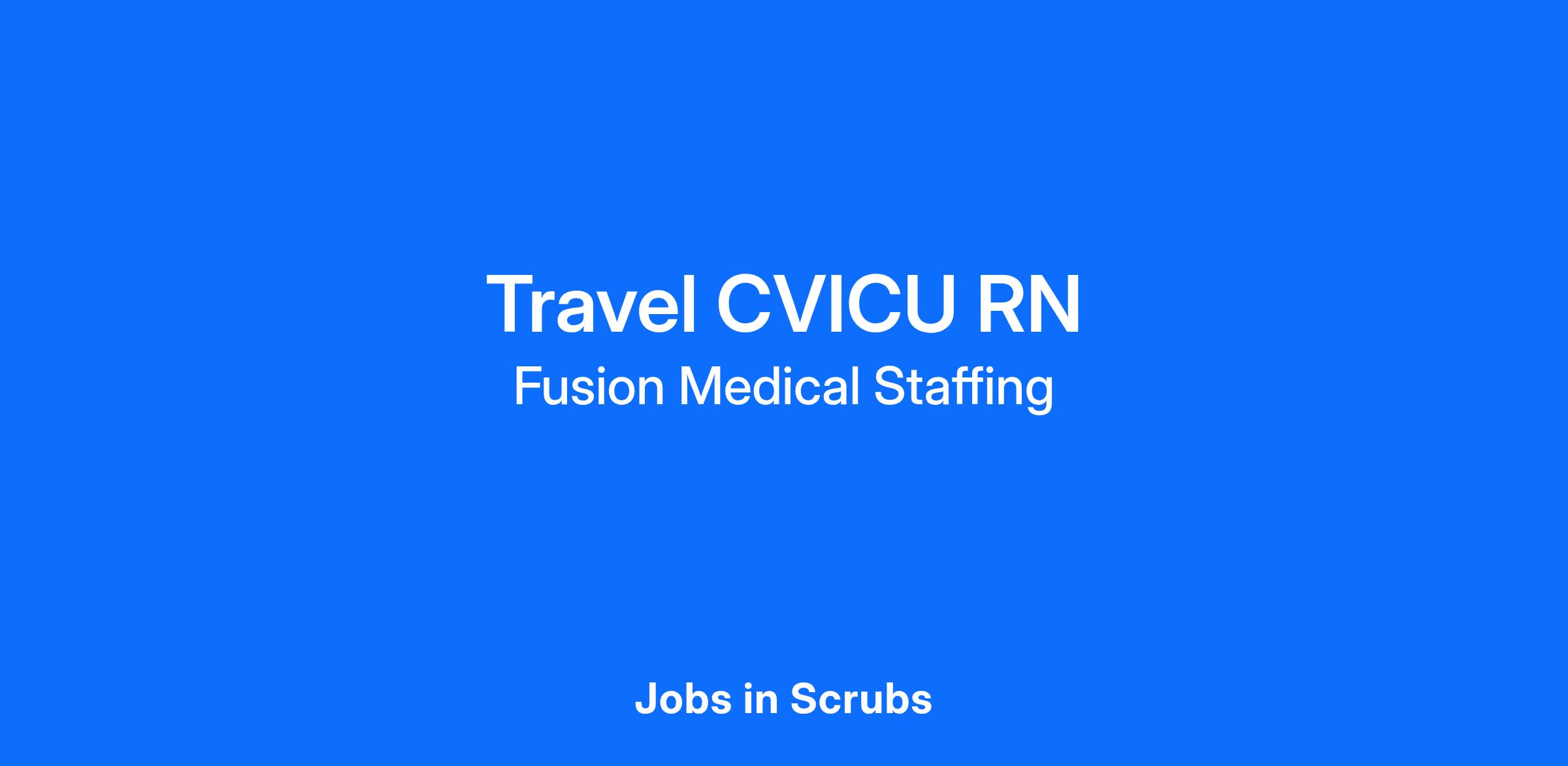 Start your rewarding career as a Travel CVICU RN with Fusion Medical Staffing and join our mission to improve lives. Apply now!