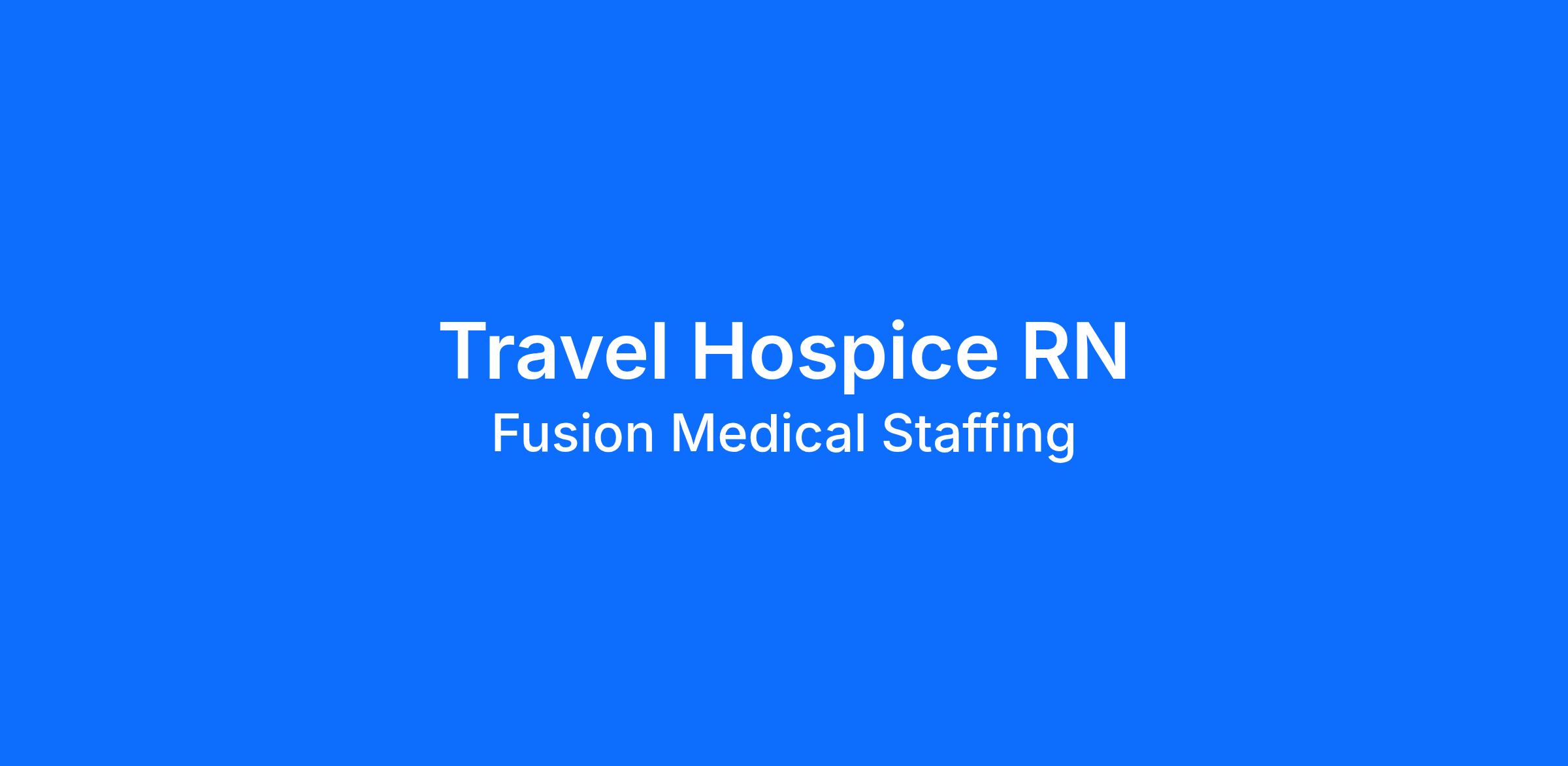 Start your rewarding career as a Travel Hospice RN with Fusion Medical Staffing and join our mission to improve lives. Apply now!