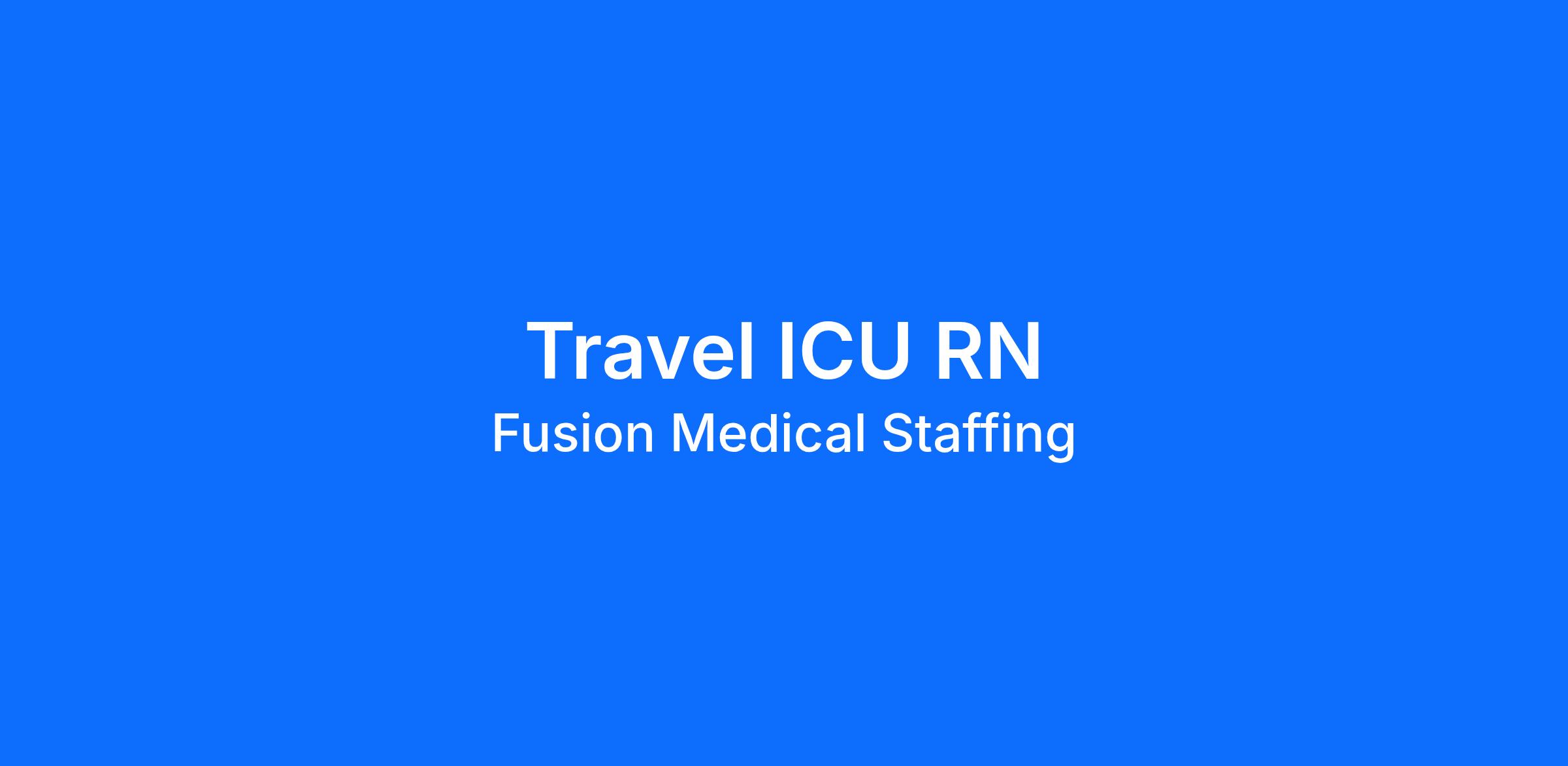 Start your rewarding career as a Travel ICU RN with Fusion Medical Staffing and join our mission to improve lives. Apply now!