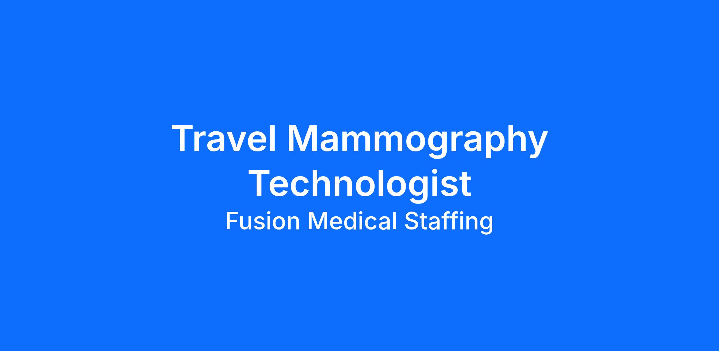 Start your rewarding career as a Travel Mammography Tech with Fusion Medical Staffing and join our mission to improve lives. Apply now!