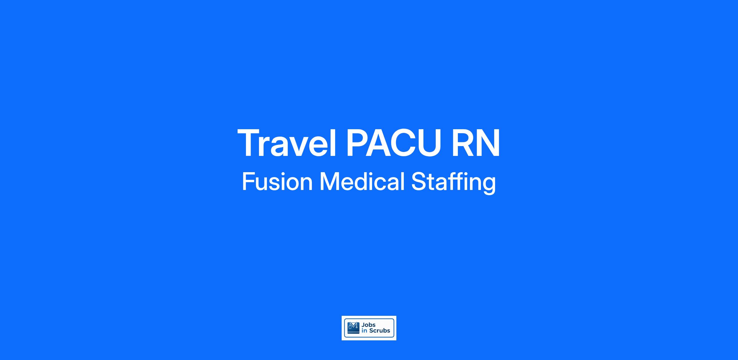 Start your rewarding career as a Travel PACU RN with Fusion Medical Staffing and join our mission to improve lives. Apply now!