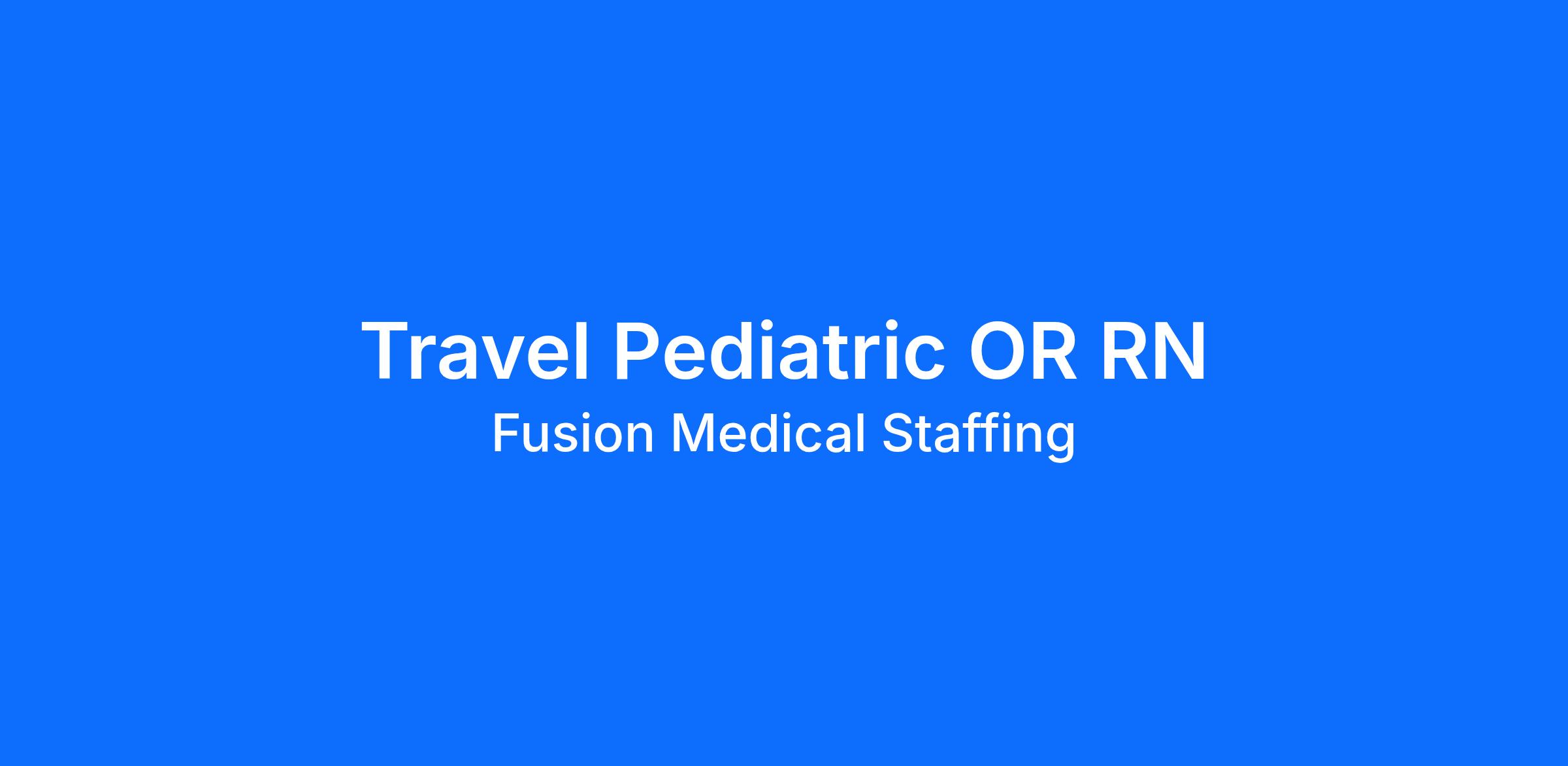 Start your rewarding career as a Travel Pediatric OR RN with Fusion Medical Staffing and join our mission to improve lives. Apply now!