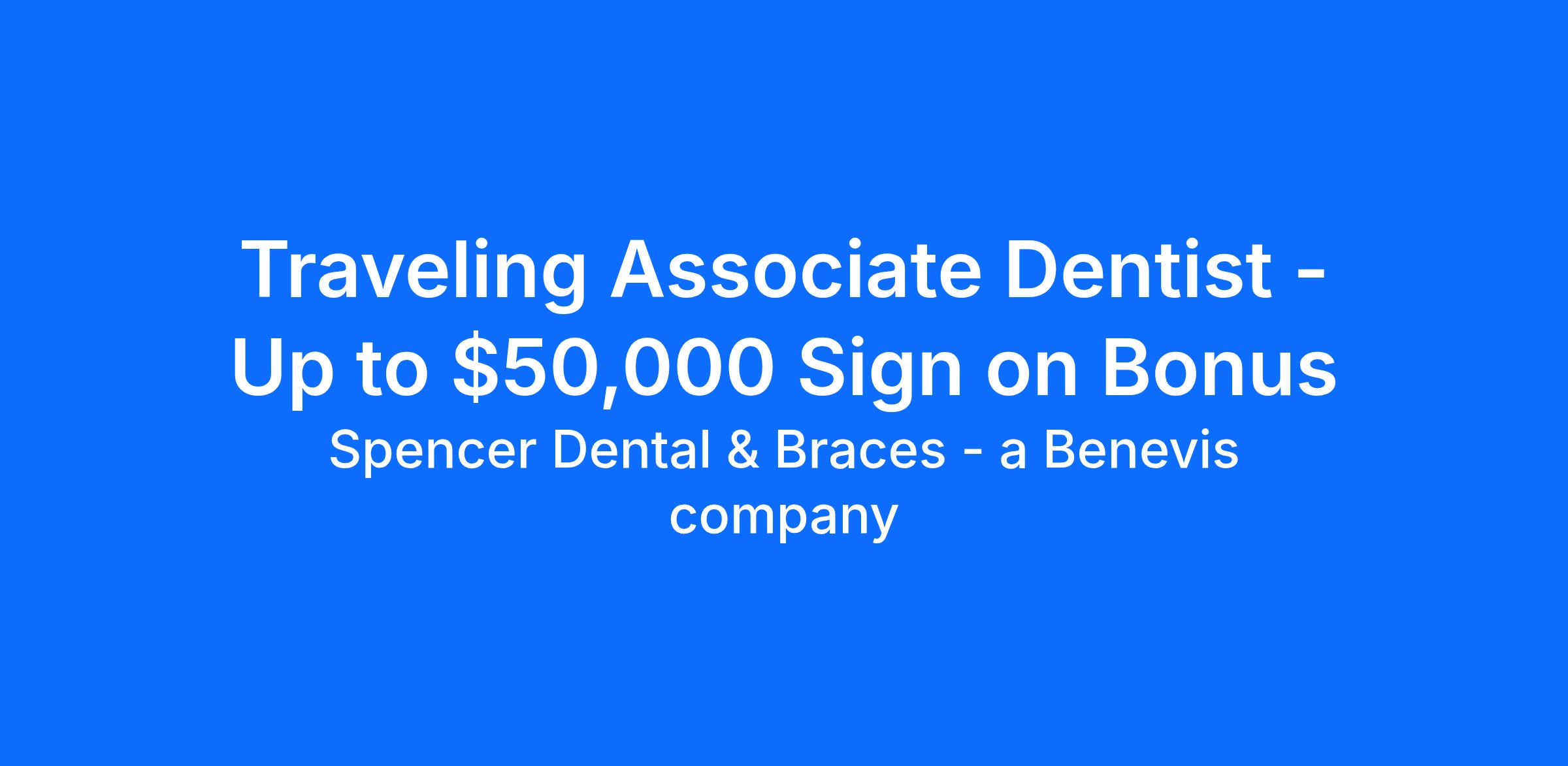 Traveling Associate Dentist - Up to $50,000 Sign on Bonus