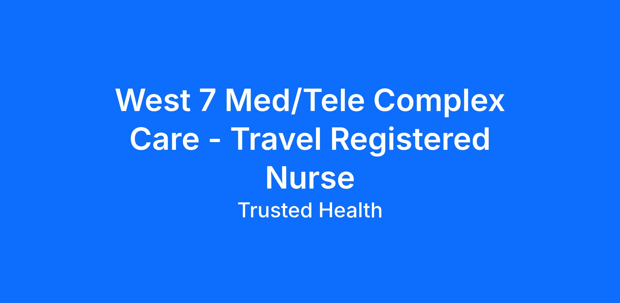 West 7 Med/Tele Complex Care - Travel Registered Nurse